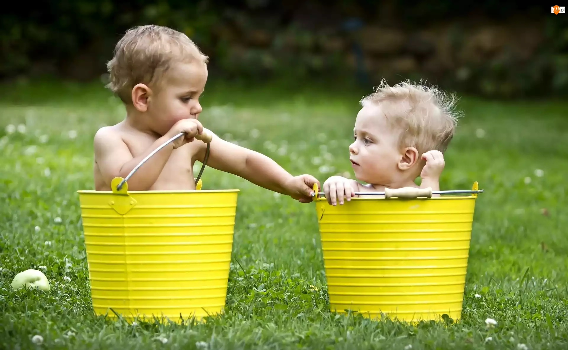 Wiaderka, Dzieci, Łąka, Żółte