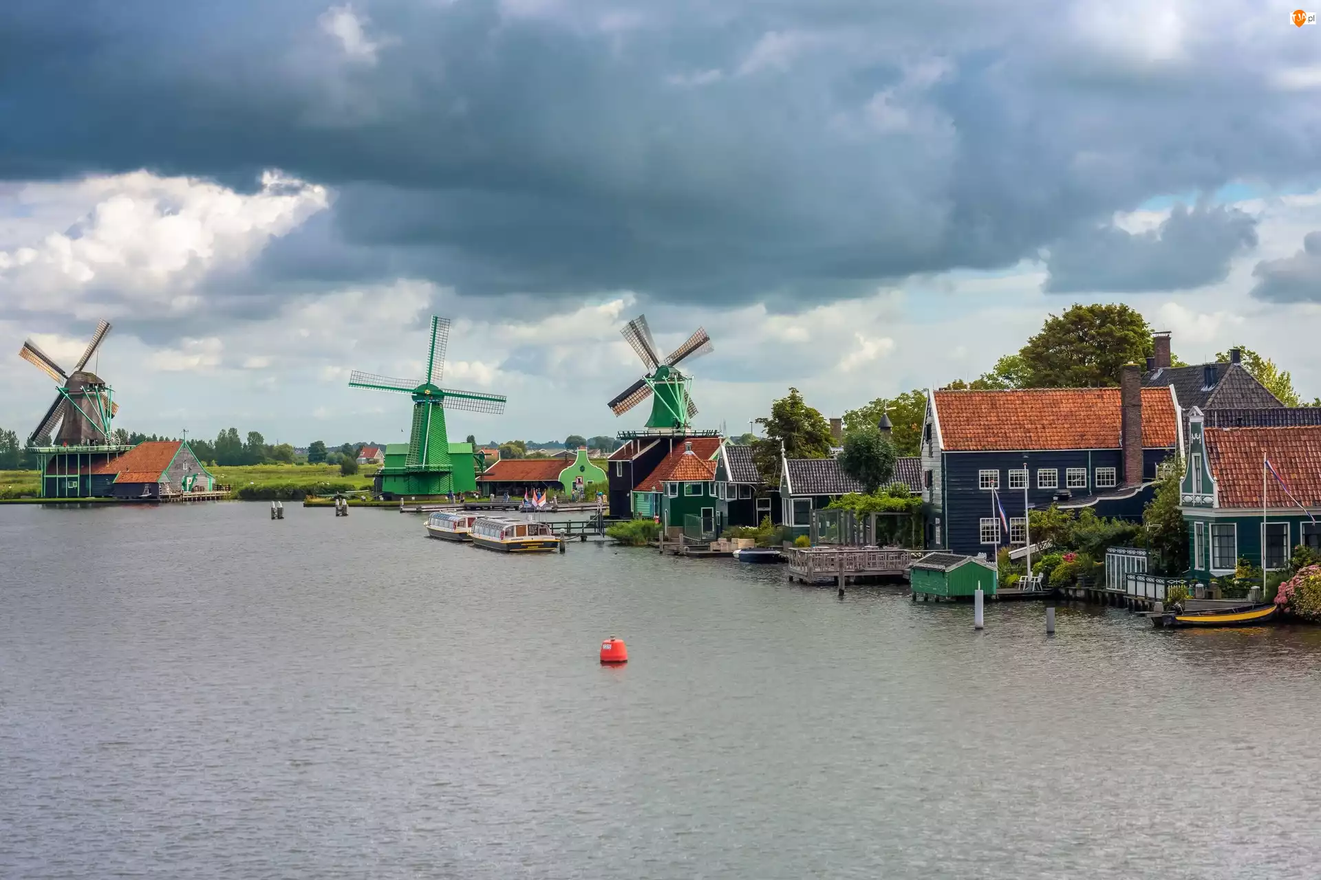 Skansen Zaanse Schans, Wiatraki, Holandia, Domy, Zaandam, Rzeka Zaan