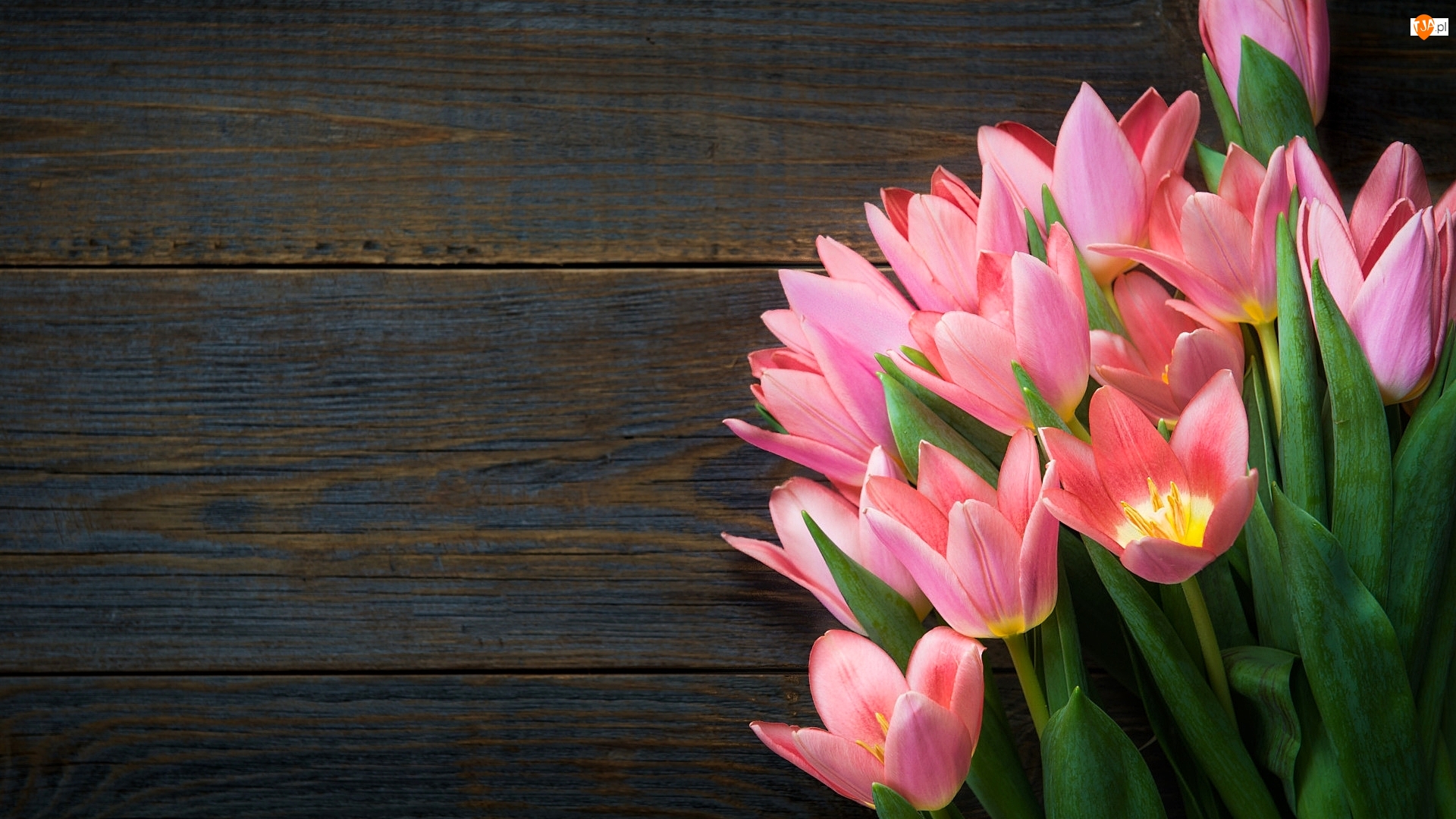 Rozkwinięte, Deski, Różowe, Kwiat, Tulipany