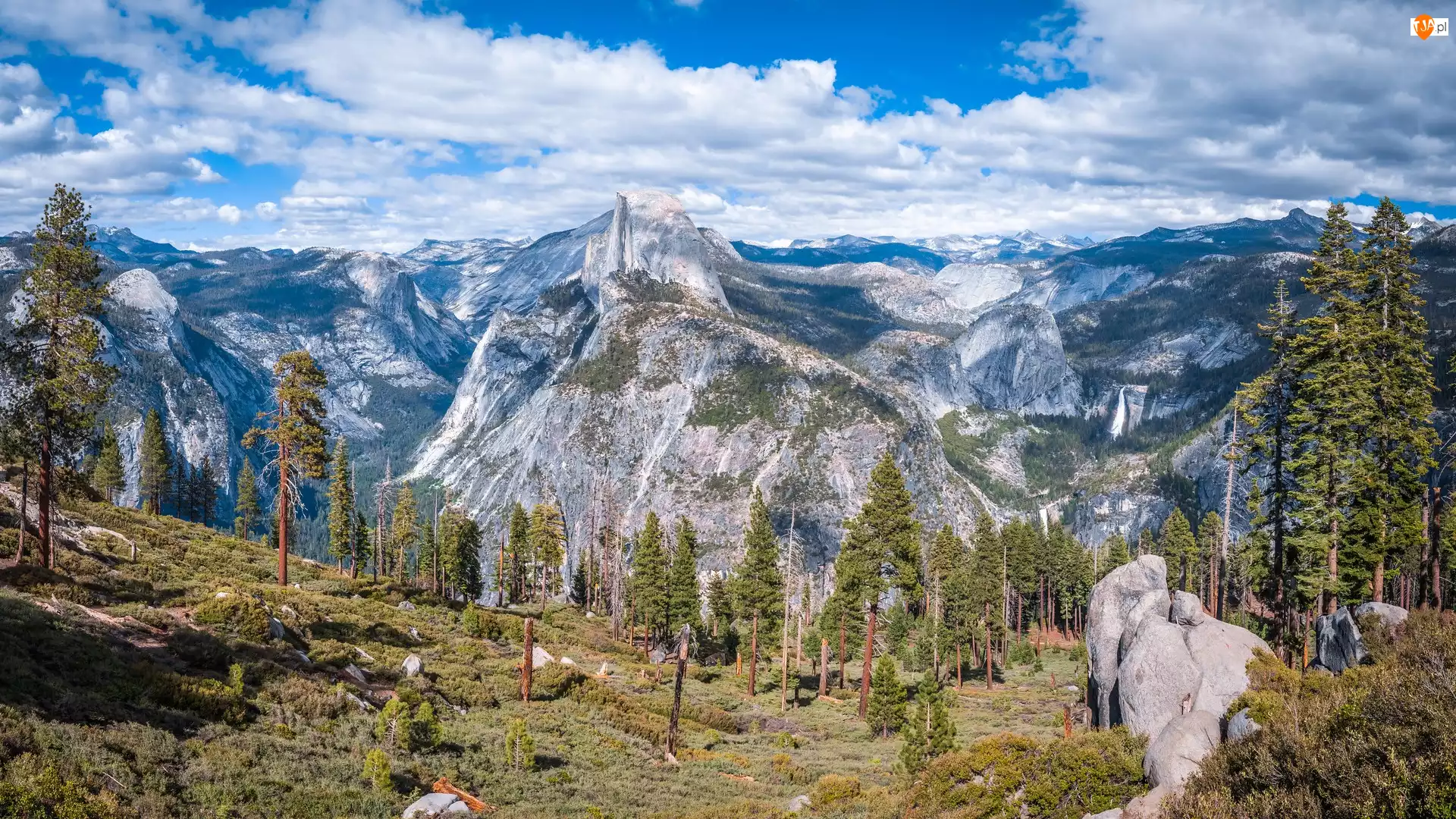 Widok na góry Glacier Point w dolinie Yosemite Va