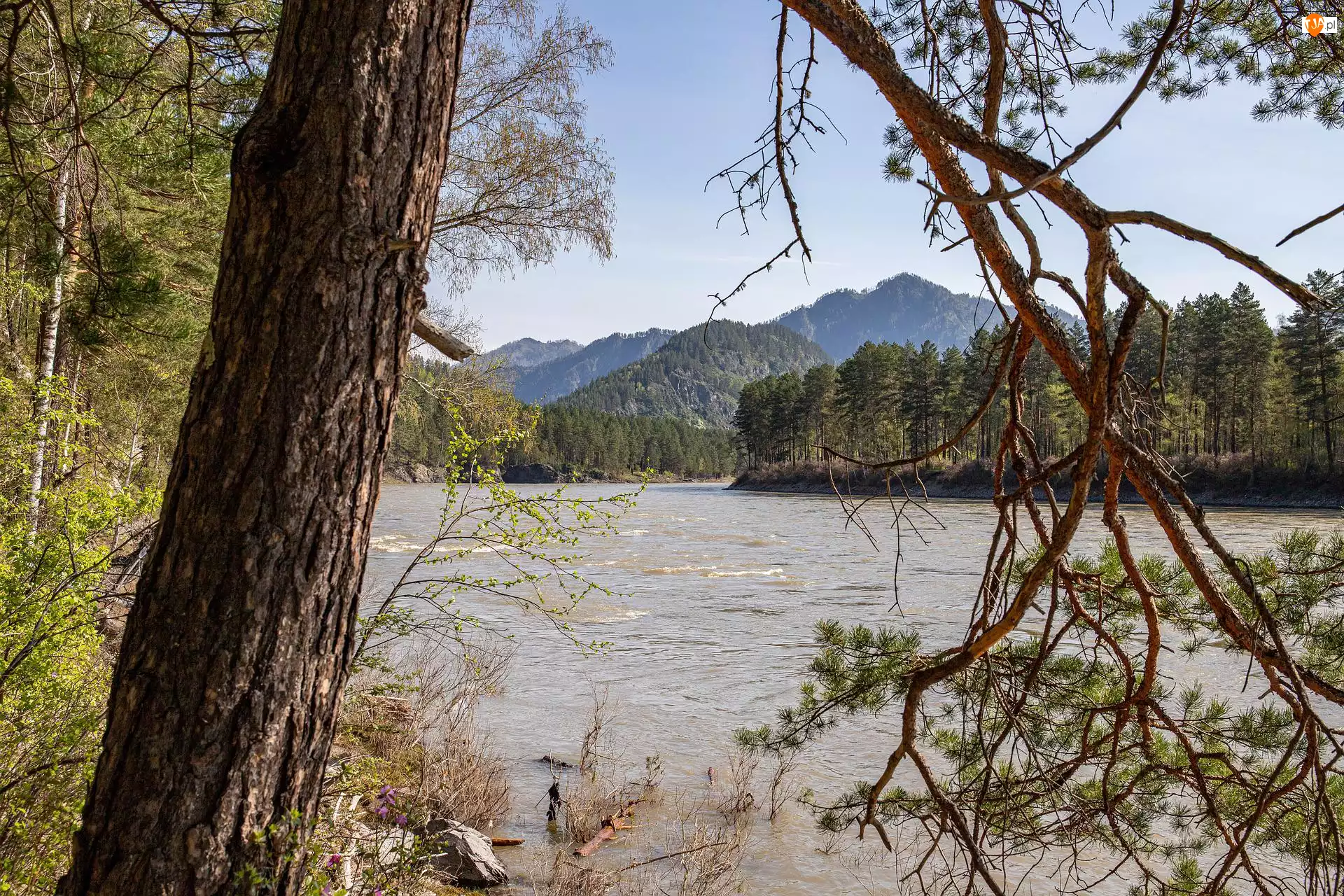 Drzewa, Rosja, Góry, Rzeka Katuń, Republika Ałtaju