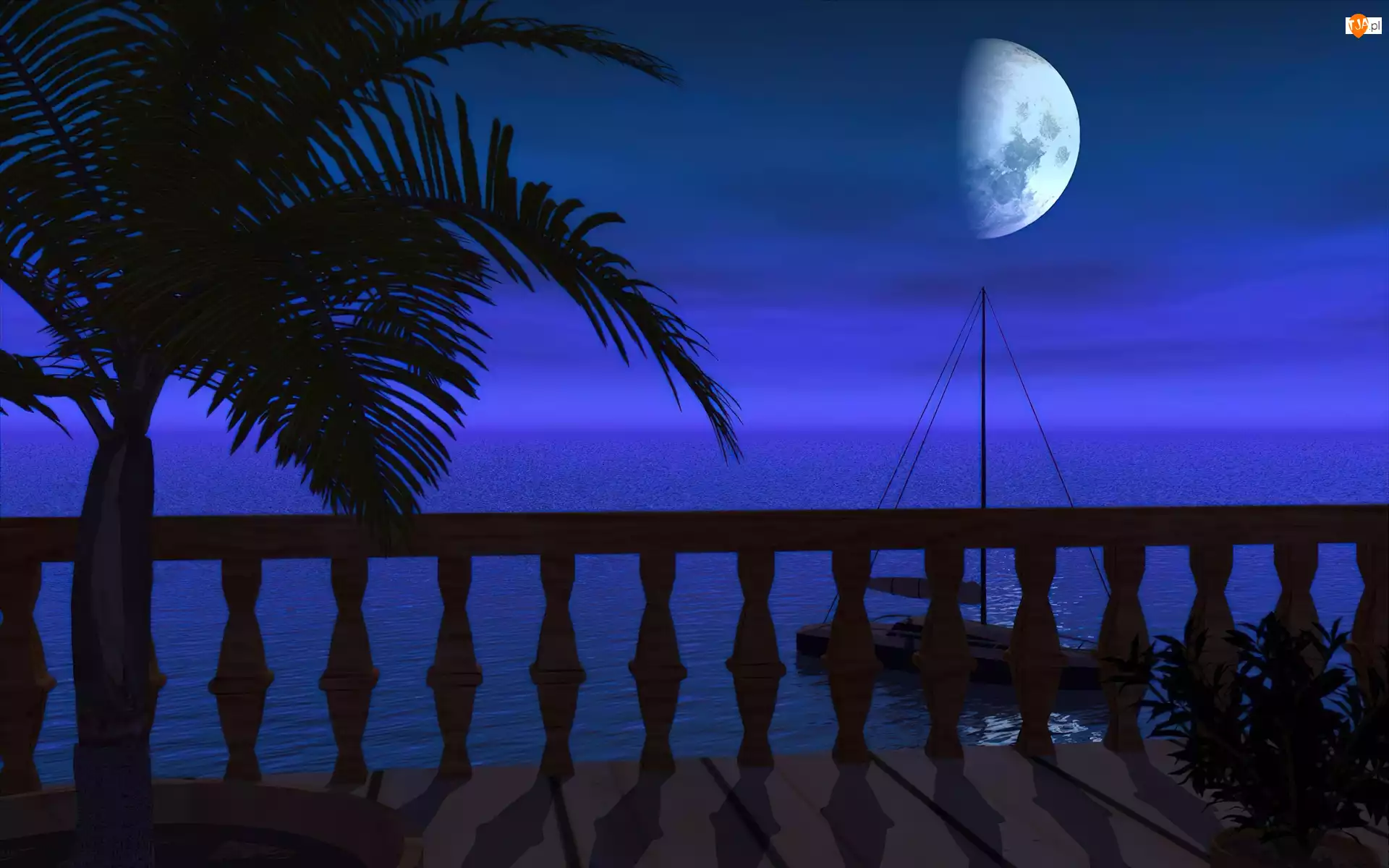 Widokowy, Księżyc, Morze, Żaglówka, Taras