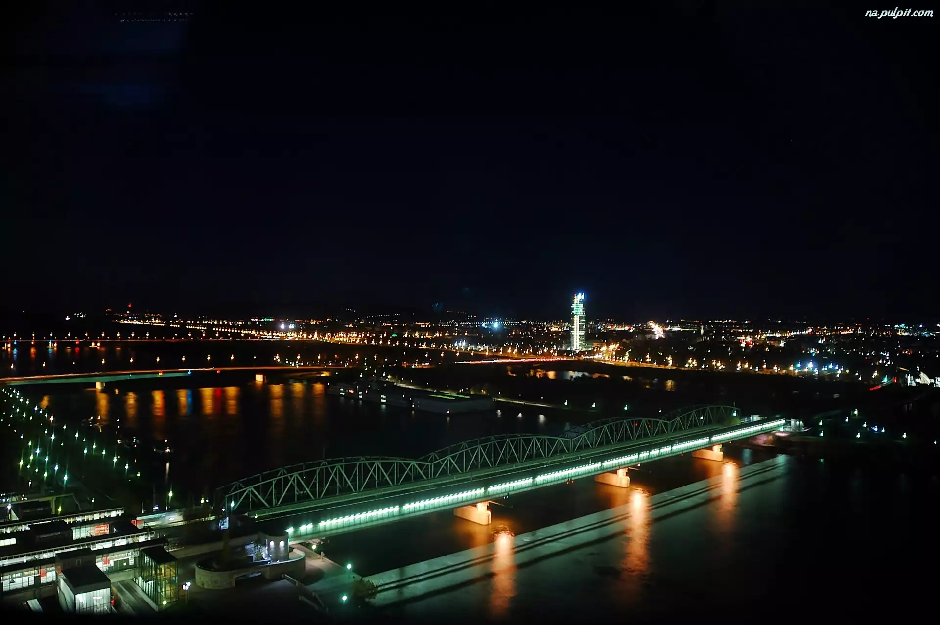 Wiedeń, Mosty, Nocą, Dunaj