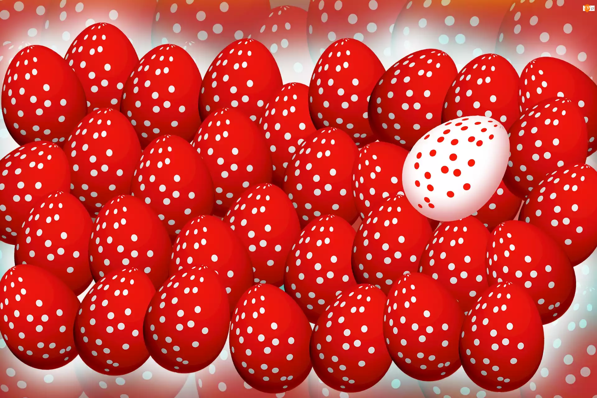 Wielkanoc, Jajeczka, Białe, Czerwone, Kropki