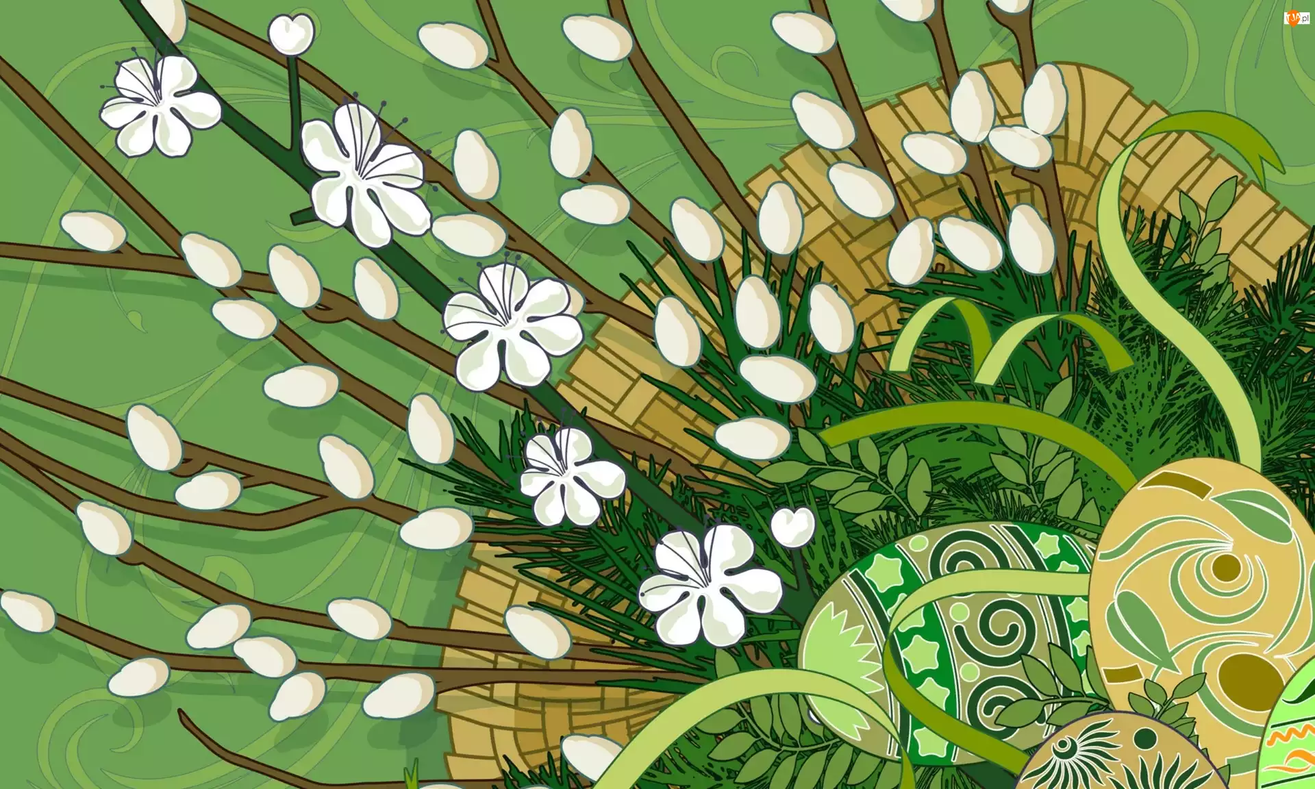 Wielkanoc, Koszyk, Palmy, Pisanki