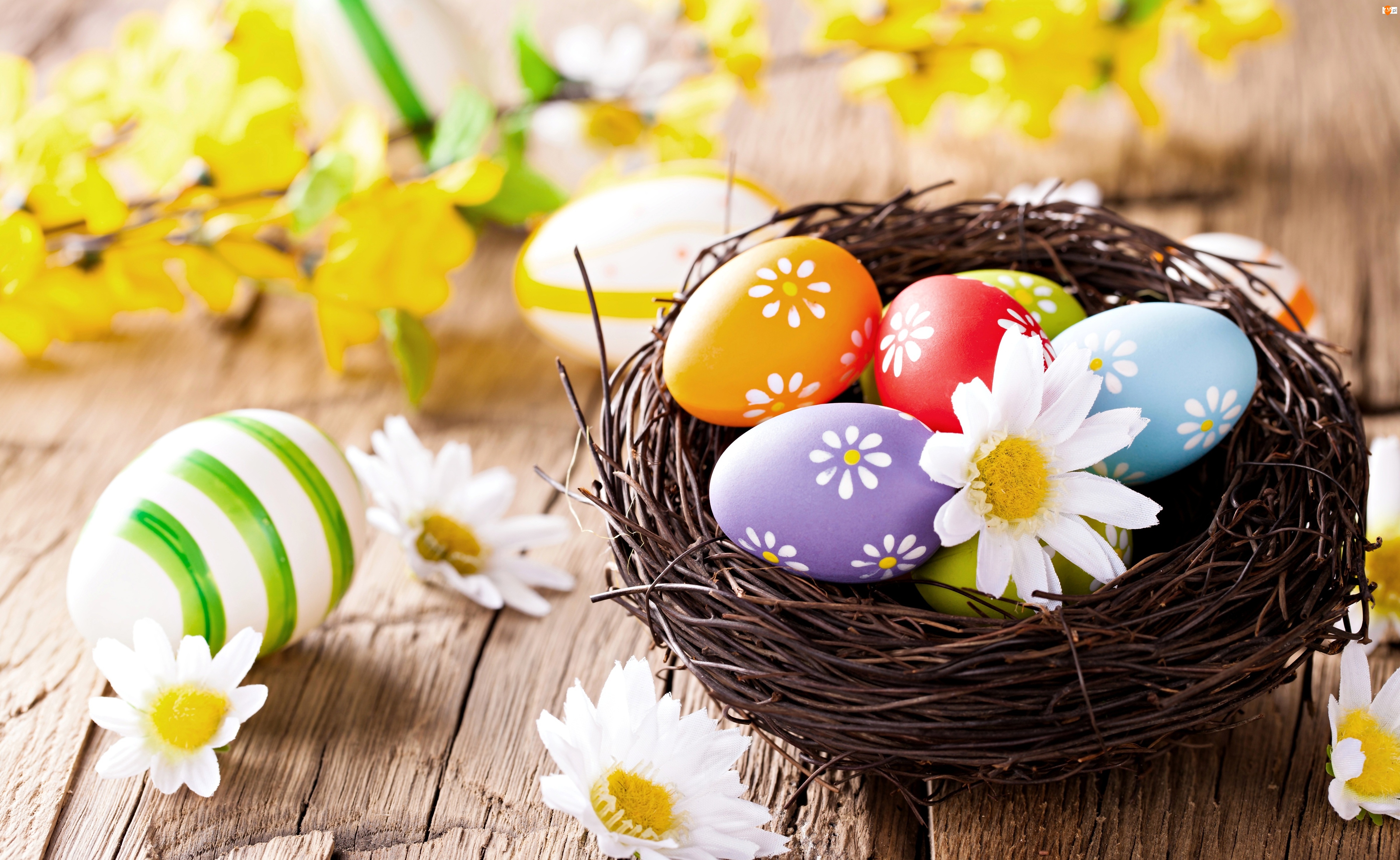 Dekoracja, Wielkanoc, Jajka, Kwiaty, Koszyczek, Pisanki
