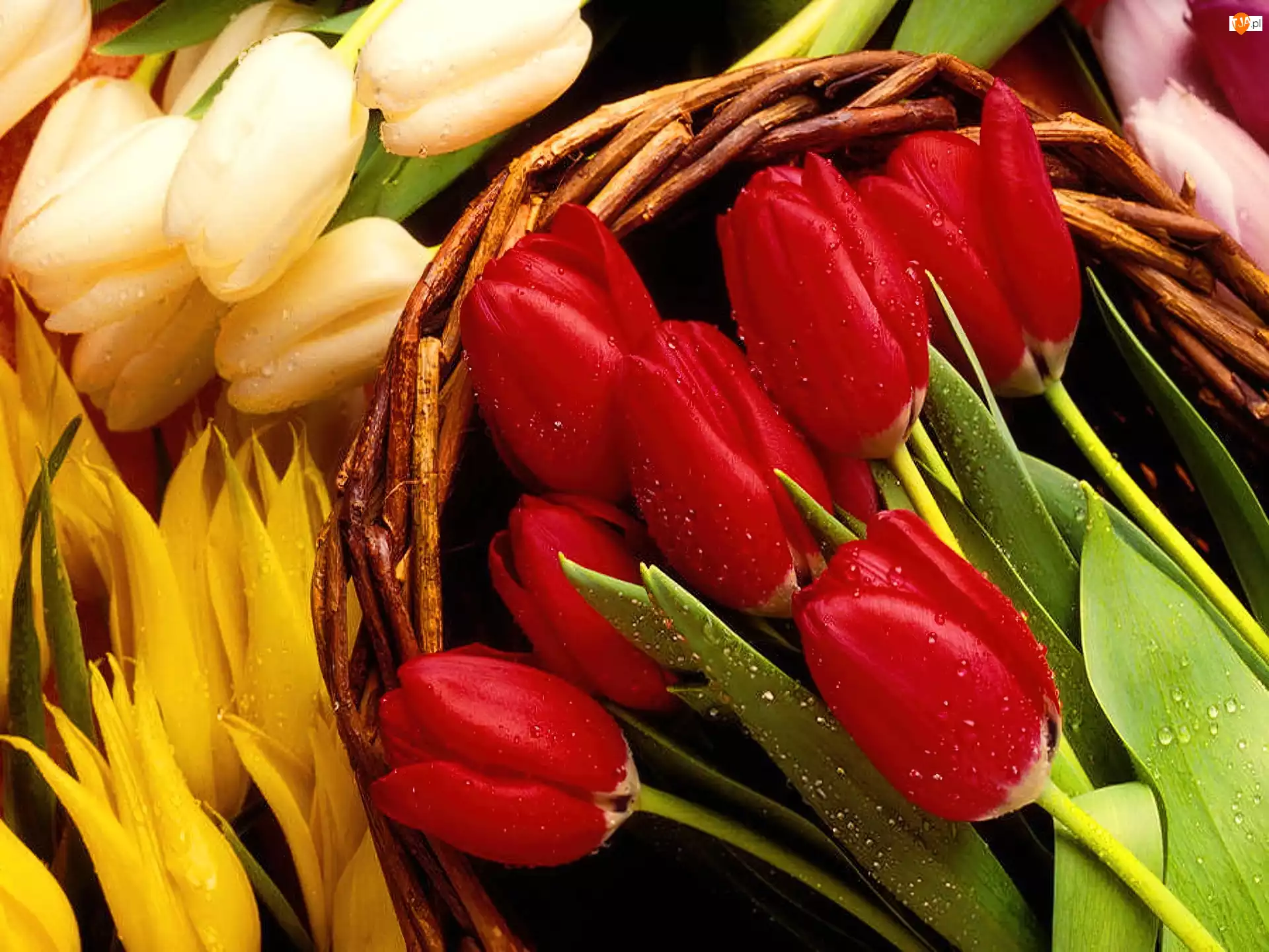 Wiklinowy, Tulipany, Kosz, Kolorowe
