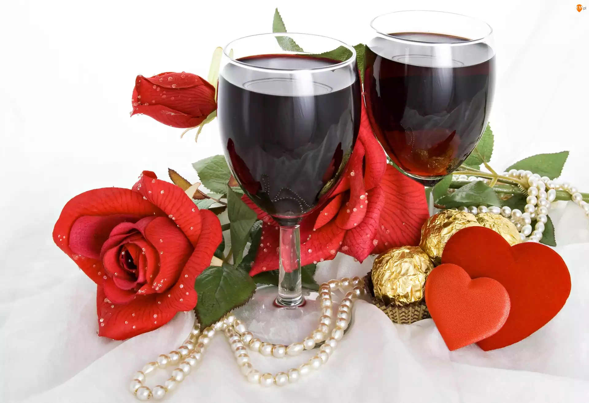 Serduszka, Wino, Kieliszki, Róże
