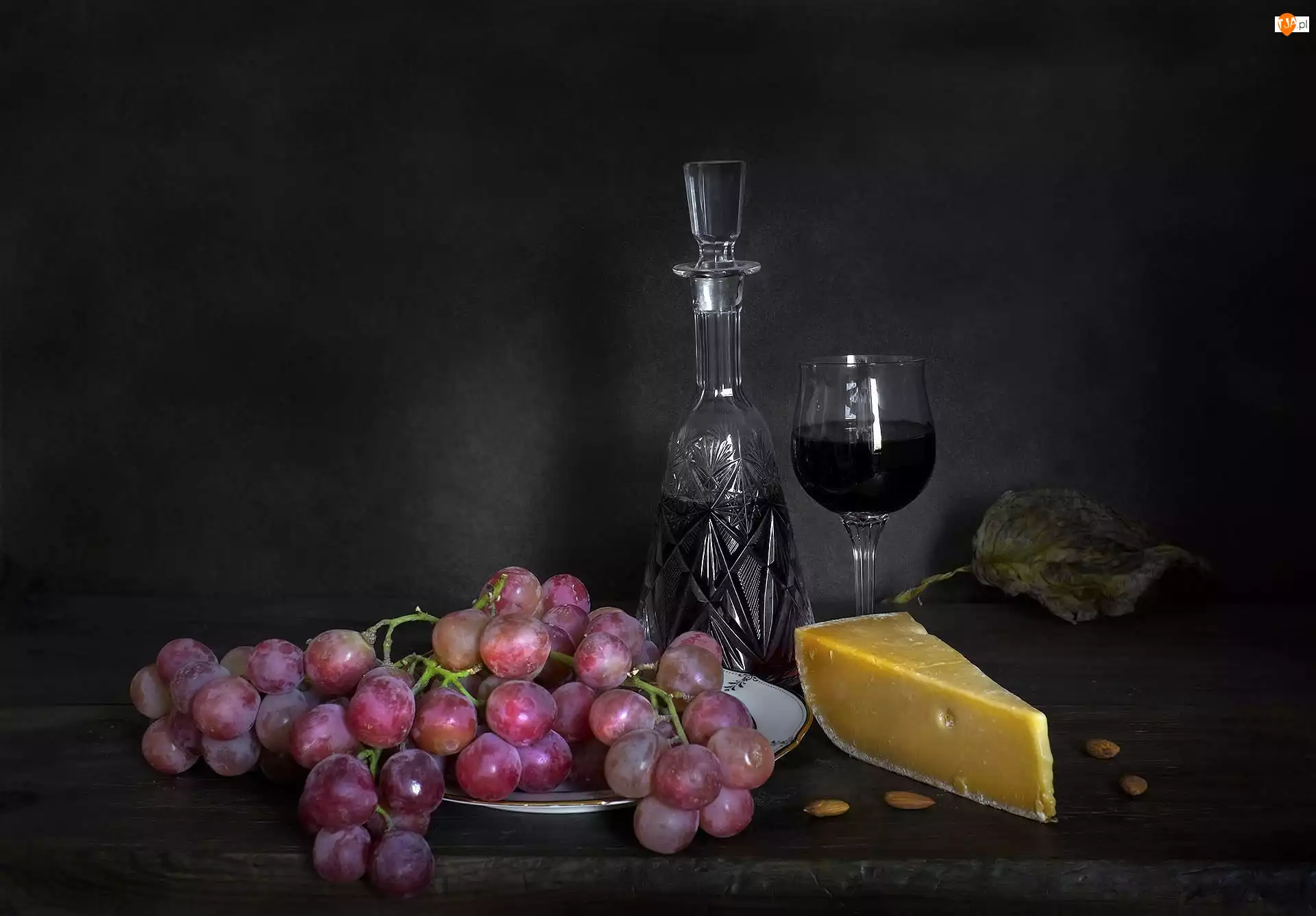 Winogrona, Kieliszek, Kompozycja, Wino, Ser, Karaf