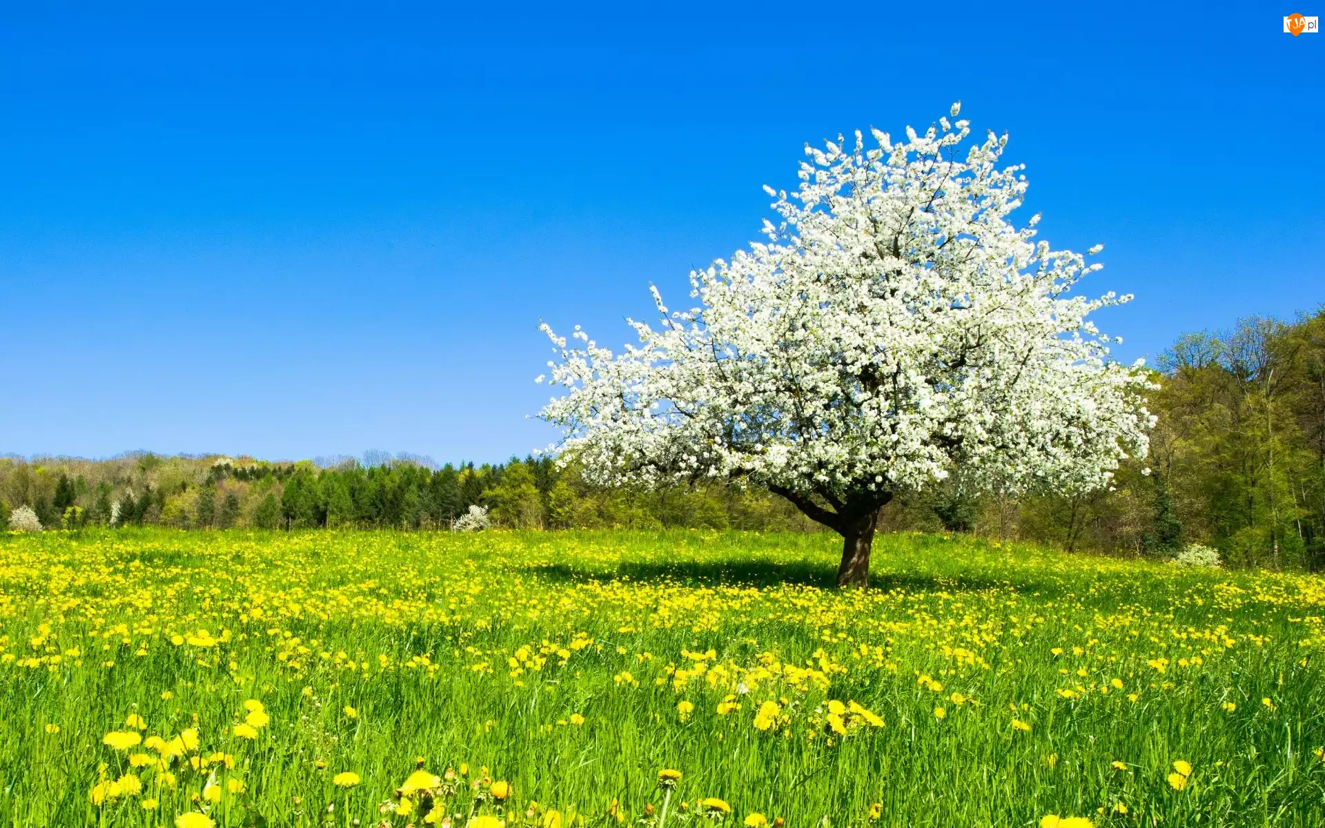 Wiosna, Łąka, Drzewo, Kwiat, Las