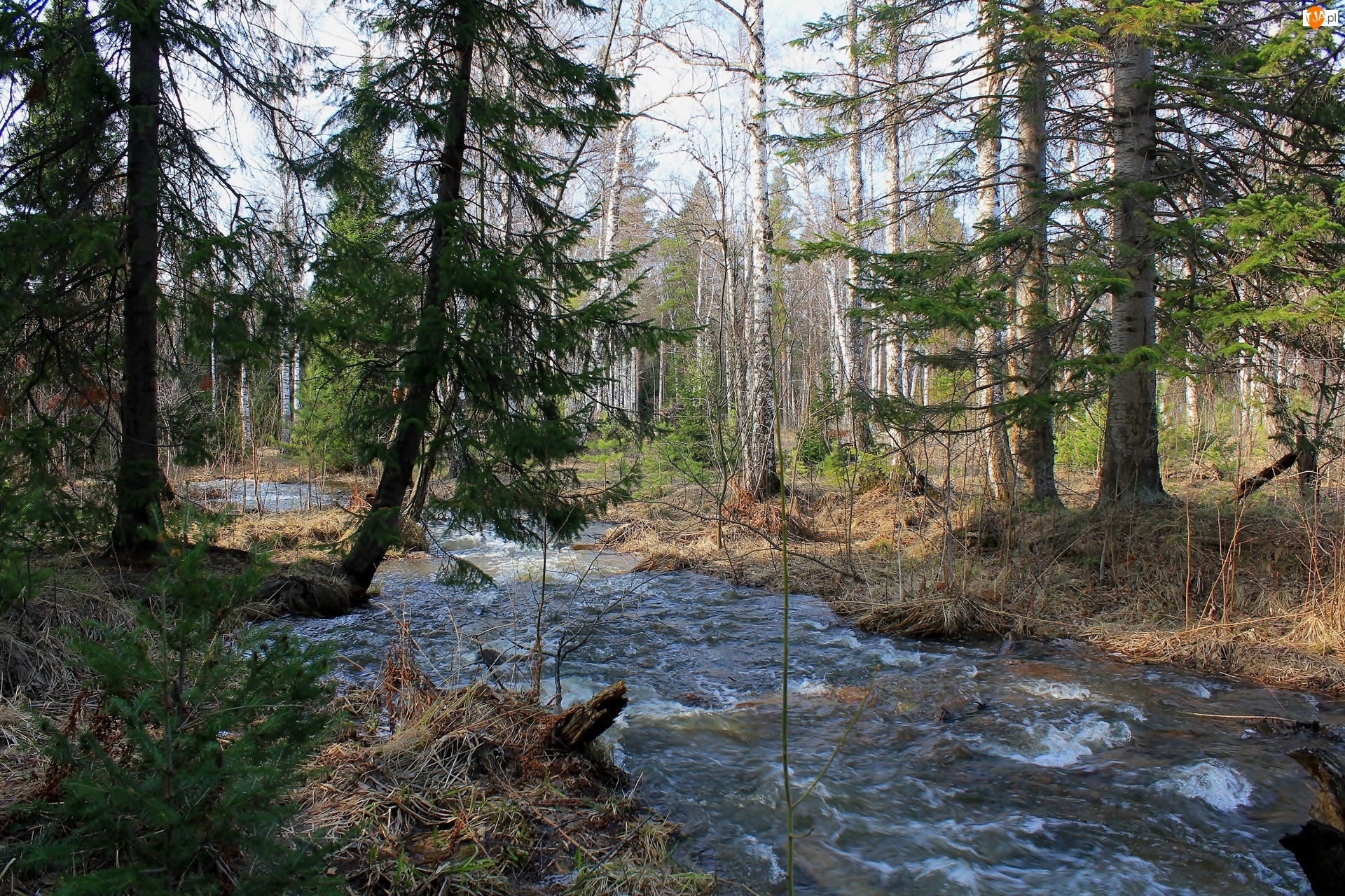 Wiosna, Las, Przebijające, Rzeka, Światło