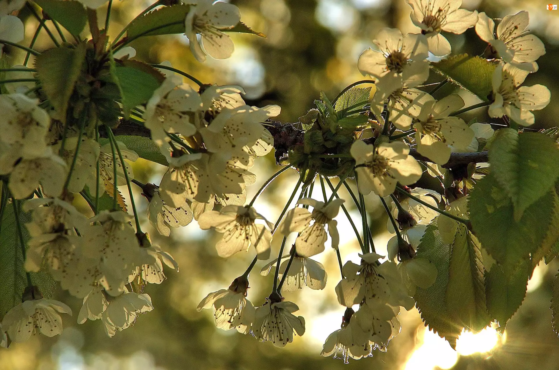 Wiśni, Gałązka, Kwitnącej