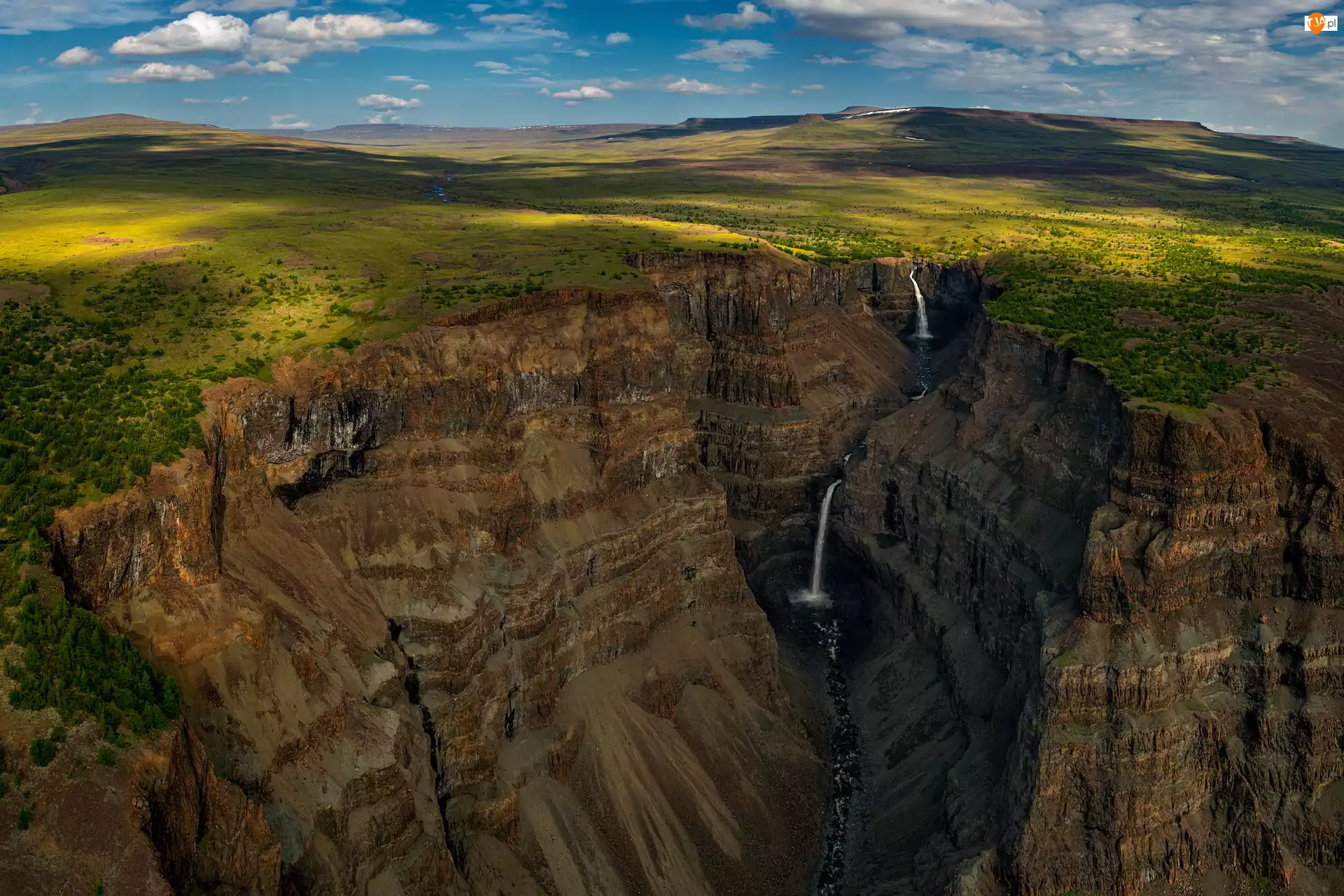 Wyżyna Środkowosyberyjska, Rosja, Skały, Płaskowyż Putorana, Rzeka, Wodospady, Kanion
