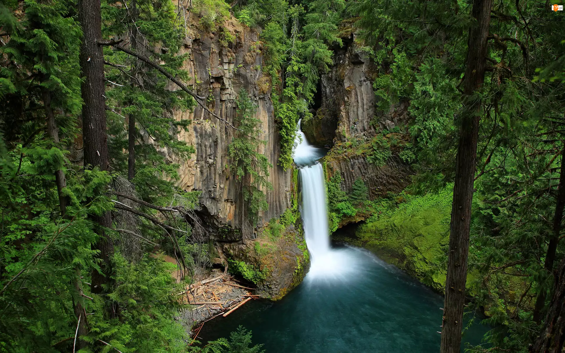 Oregon Stany Zjednoczone, Las, Wodospad Toketee, Park Narodowy Jeziora Kraterowego