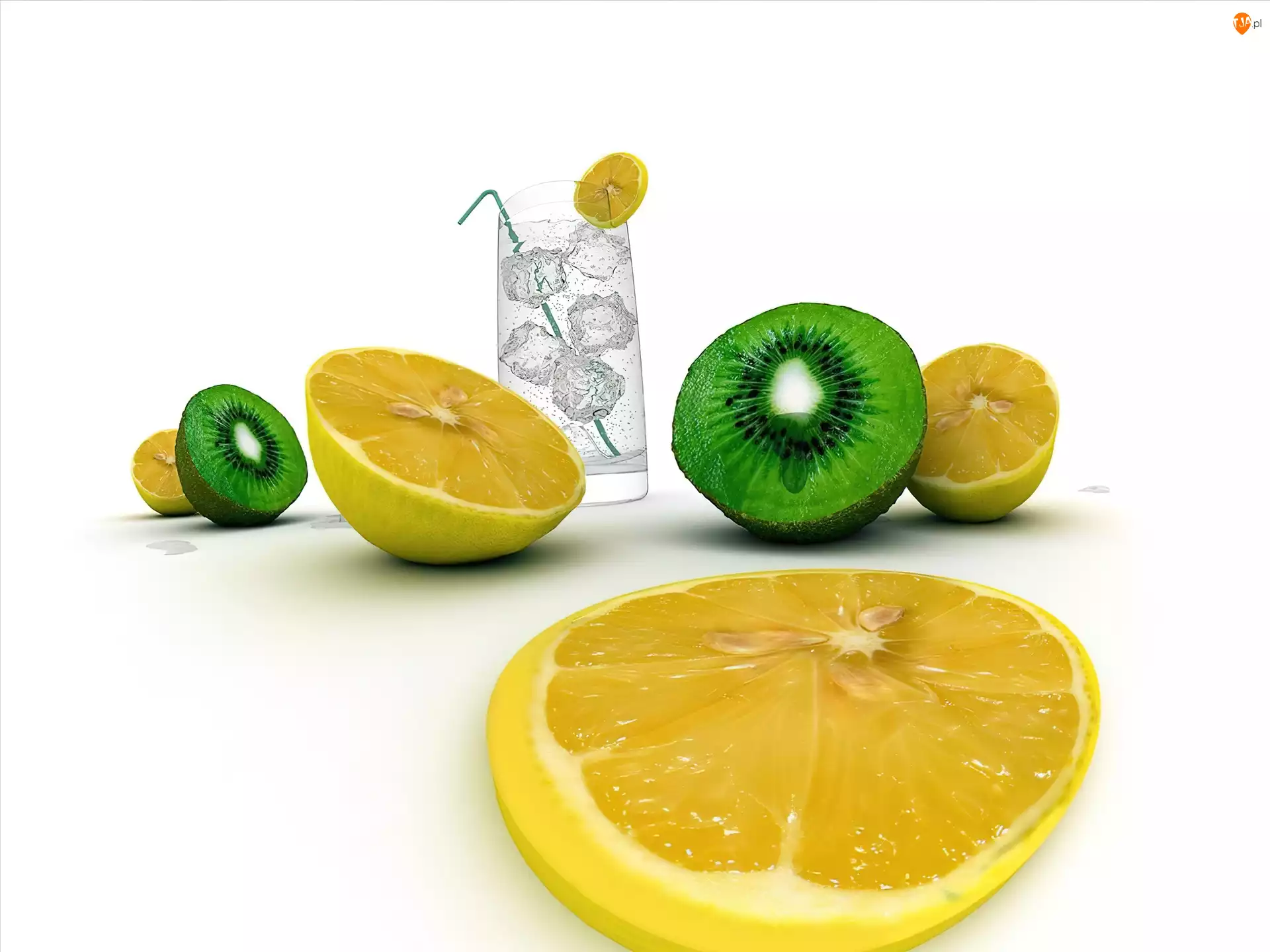 Kiwi, Wody, Cytryny, Plasterek, Szklanka