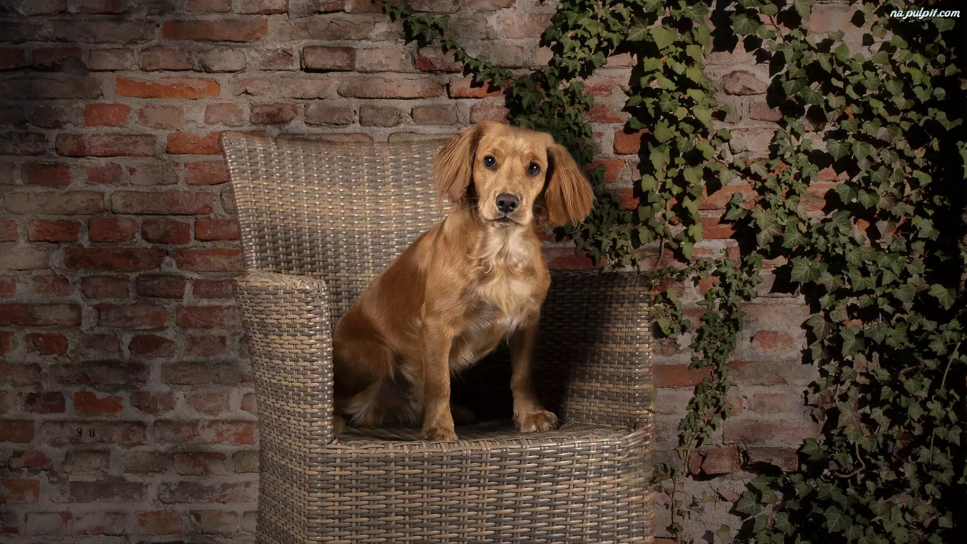 Fotel, Bluszcz, Working cocker spaniel, Pies, Ściana