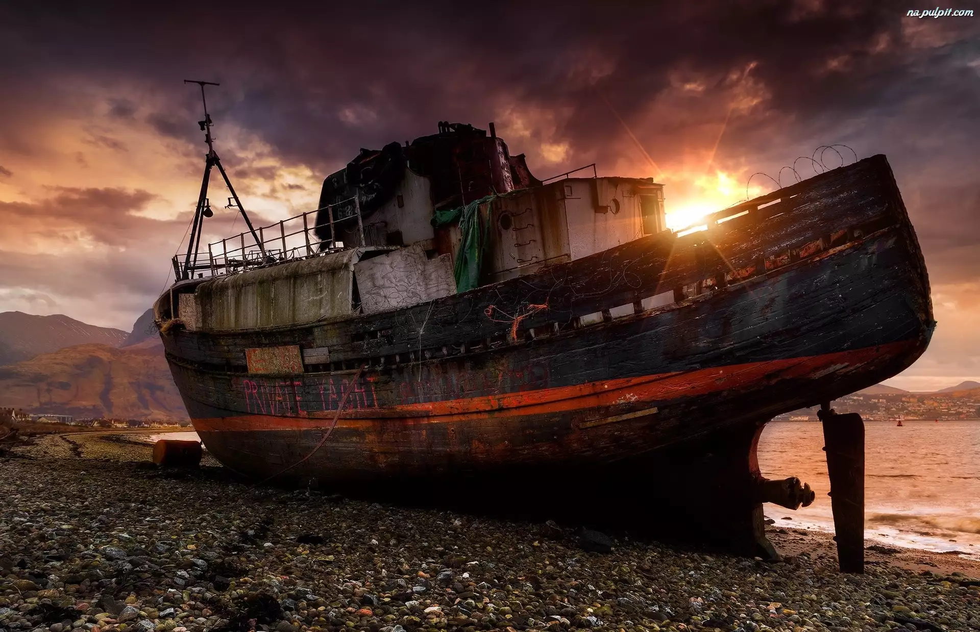 Corpach, Szkocja, Wrak, Plaża, Jezioro Linnhe, Kamienie