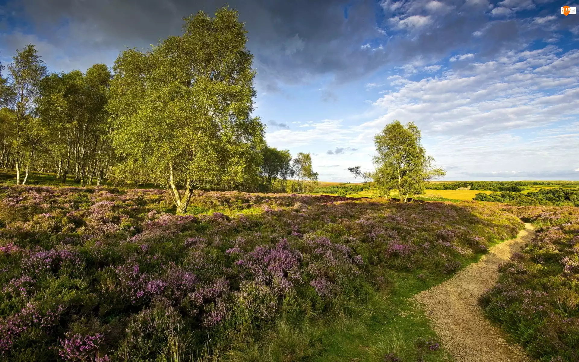 Drzewa, Wrzosowisko, Pole, Wrzosy, Ścieżka