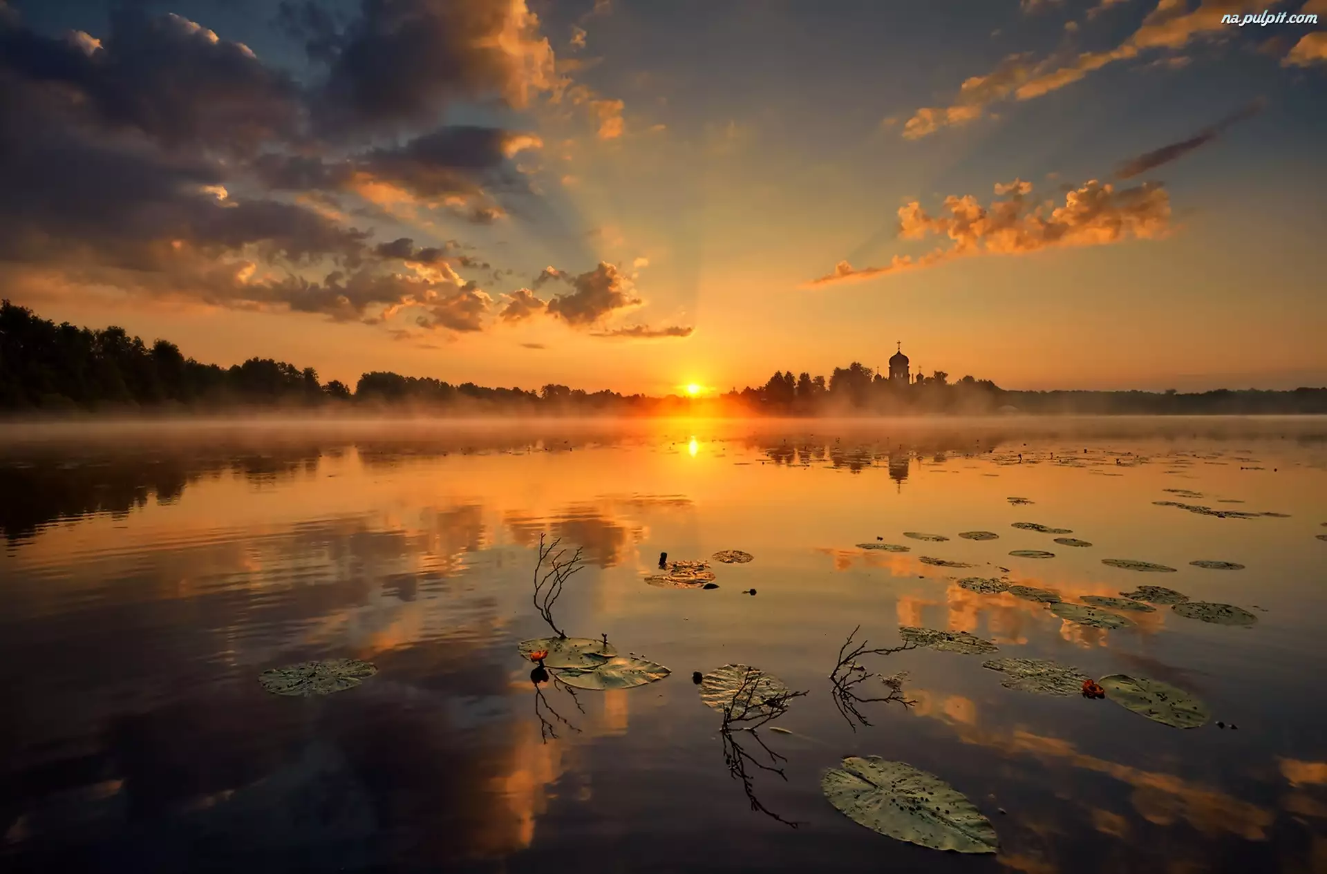 Wschód słońca, Jezioro, Mgła