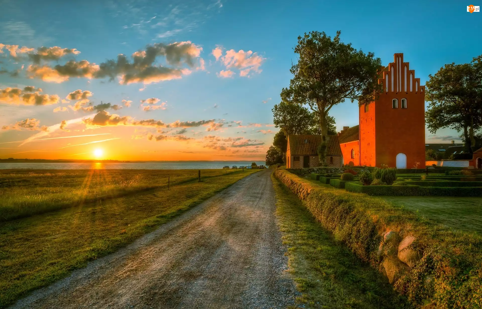Wschód słońca, Niemcy, Droga, Kościół