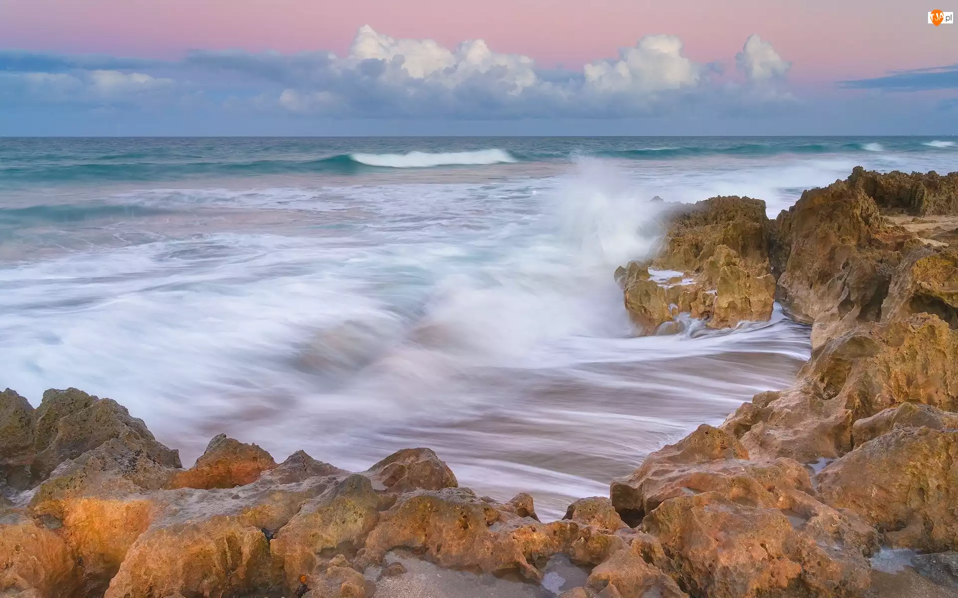 Wybrzeże, Skały, Stany Zjednoczone, Morze, Floryda, Jupiter Island, Fale