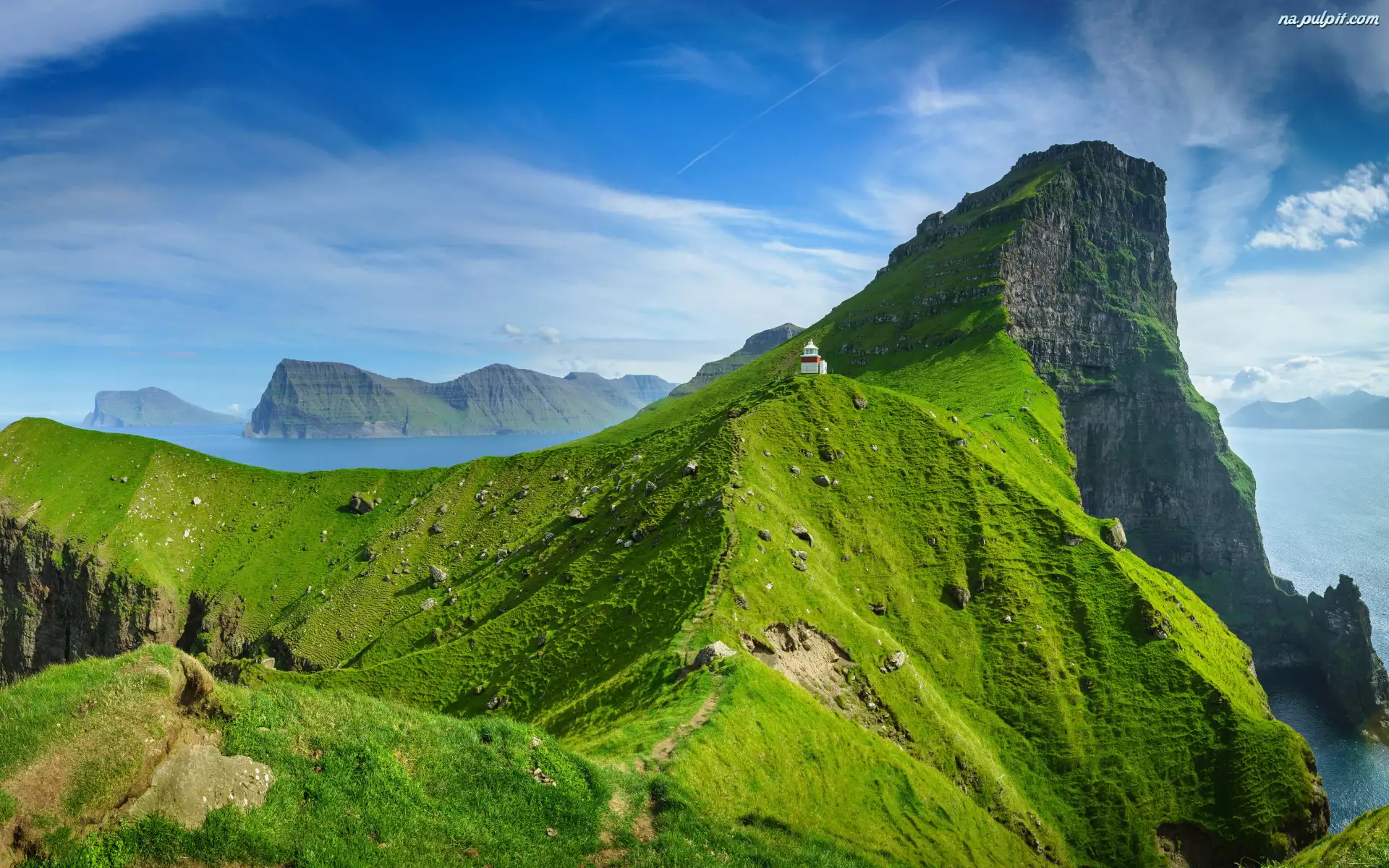 Wyspy Owcze, Wyspa, Kallur Lighthouse, Dania, Latarnia morska, Góry, Kalsoy