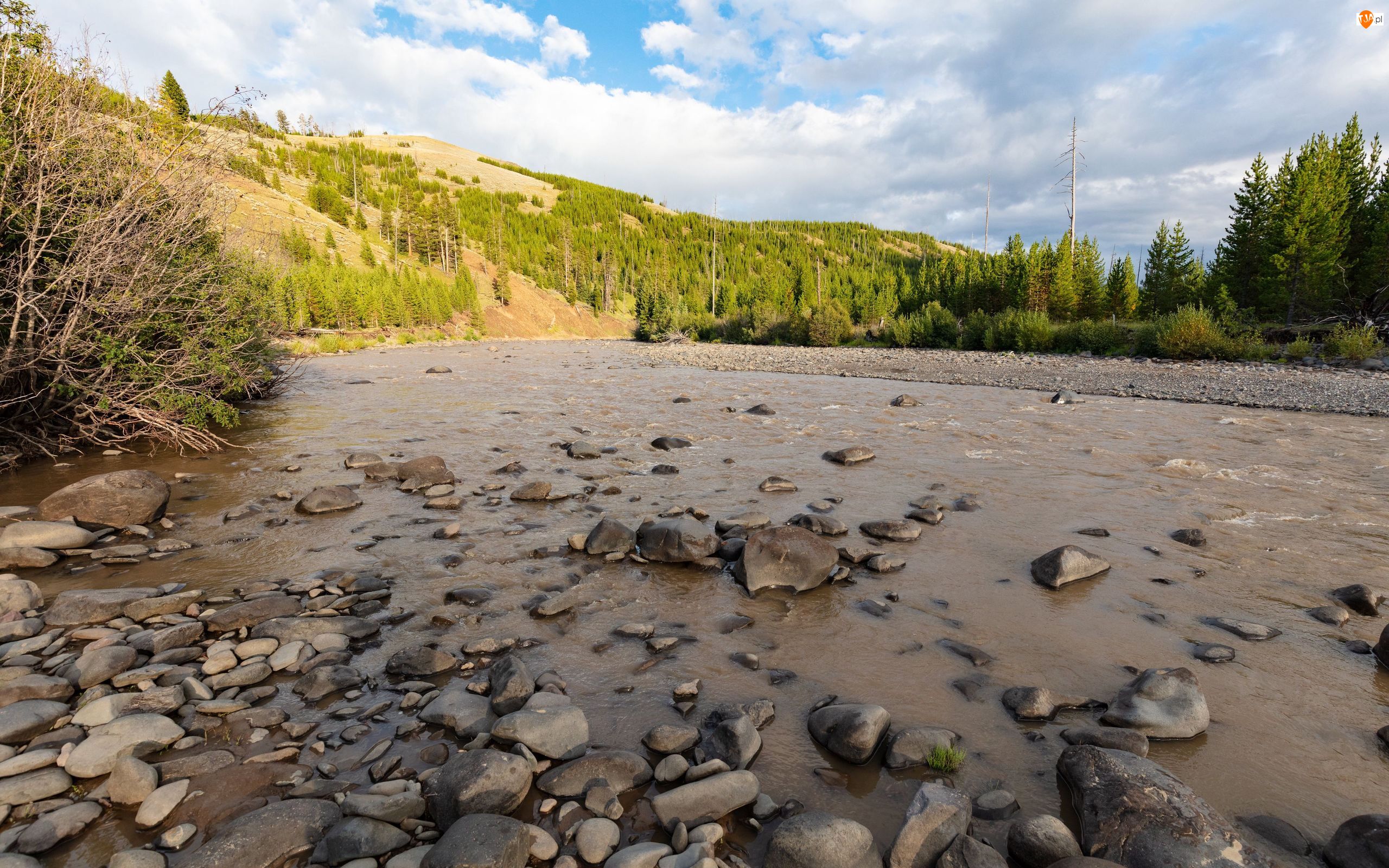 Wzgórze, Kamienie, Rzeka, Drzewa