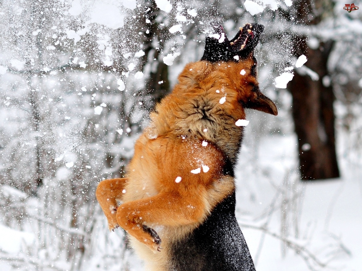 Zabawa, Niemiecki, Śnieg, Owczarek