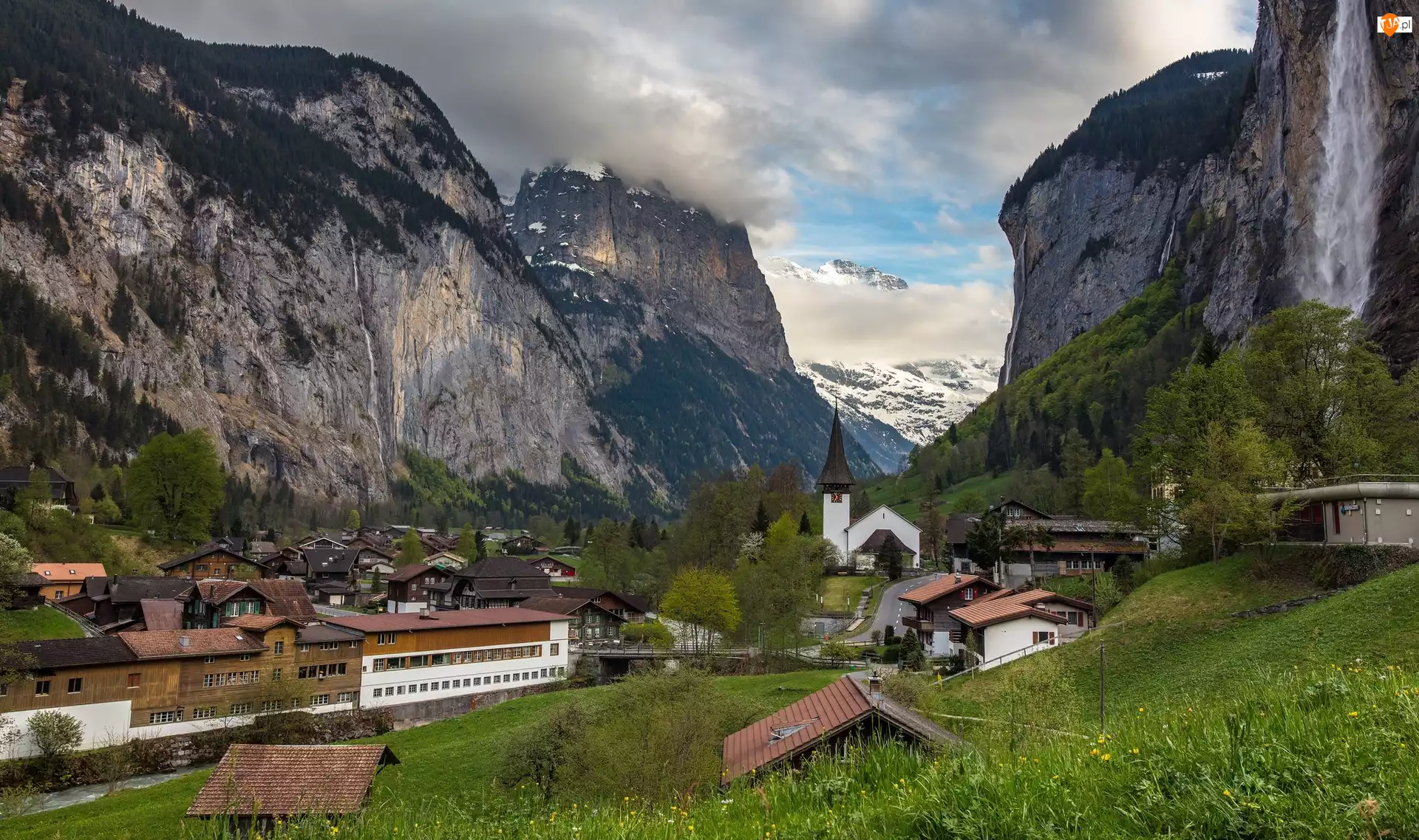 Szwajcaria, Miejscowość Lauterbrunnen, Domy, Góry, Kanton Berno