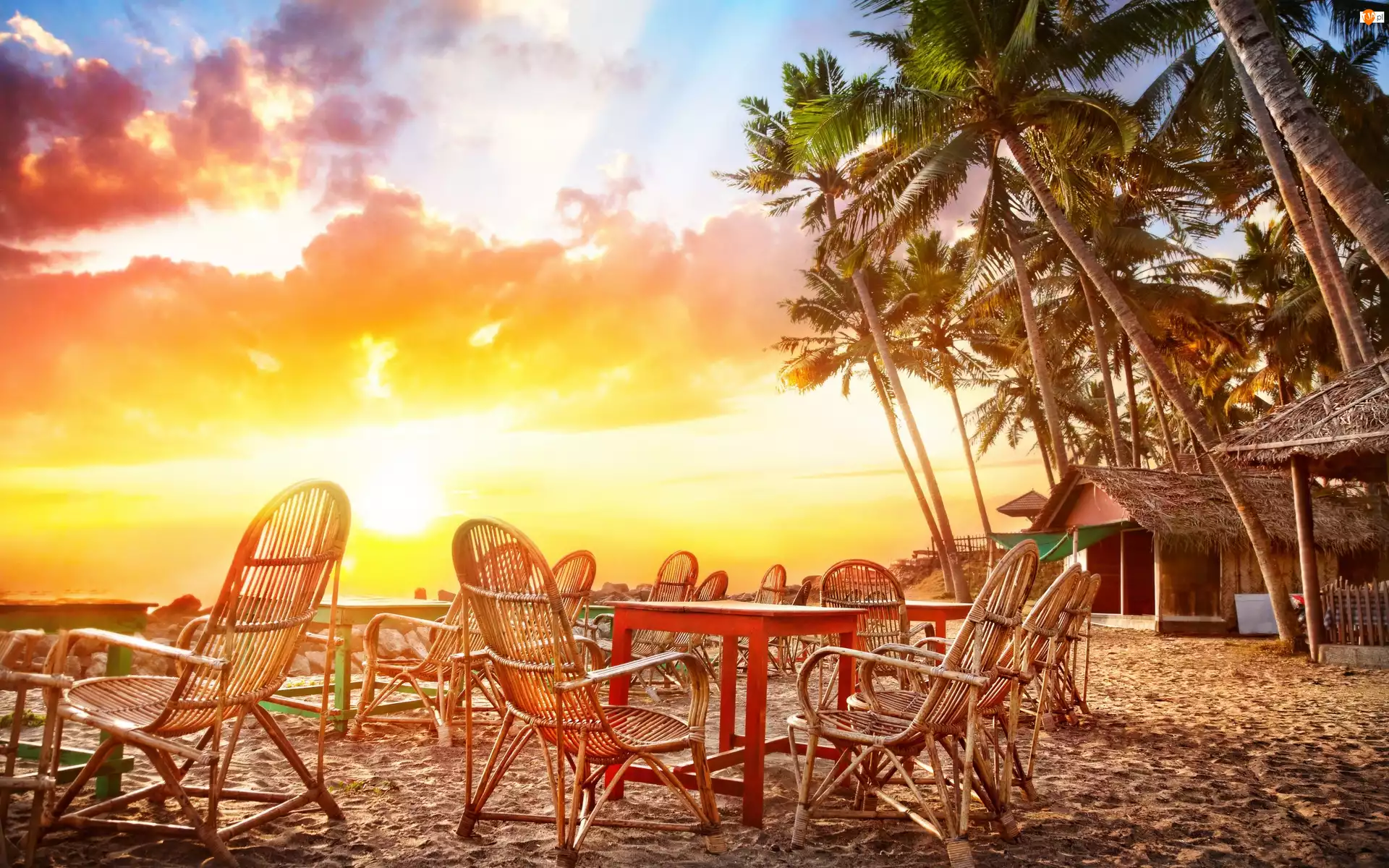 Zachód, Fotele, Słońca, Palmy