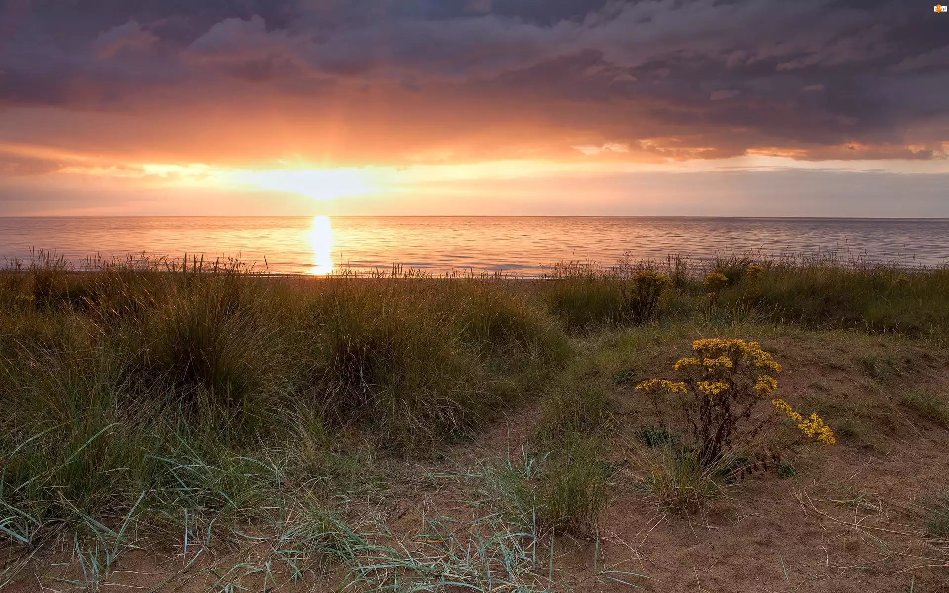 Zachód, Roślinność, Słońca, Plaża