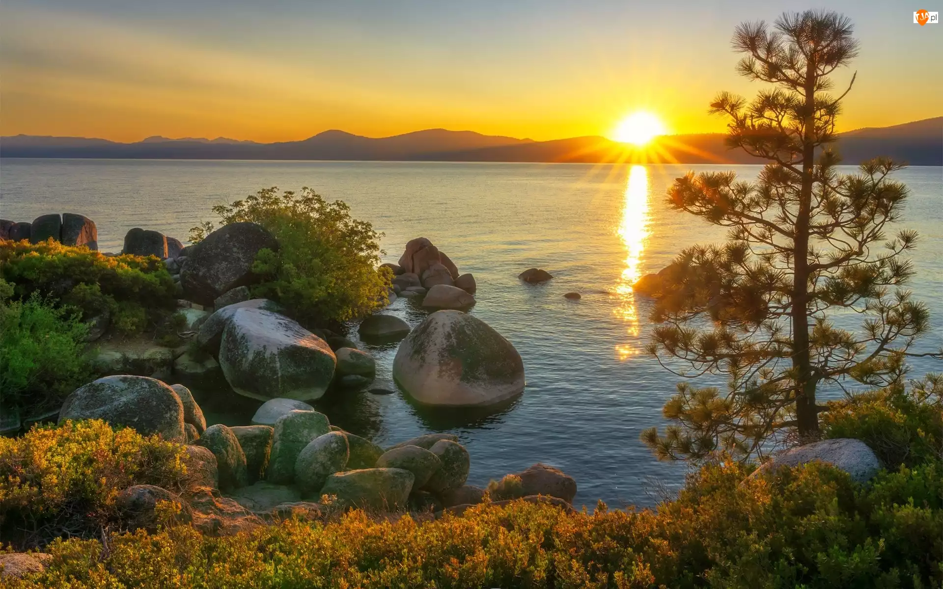Zachód słońca, Stany Zjednoczone, Jezioro Tahoe