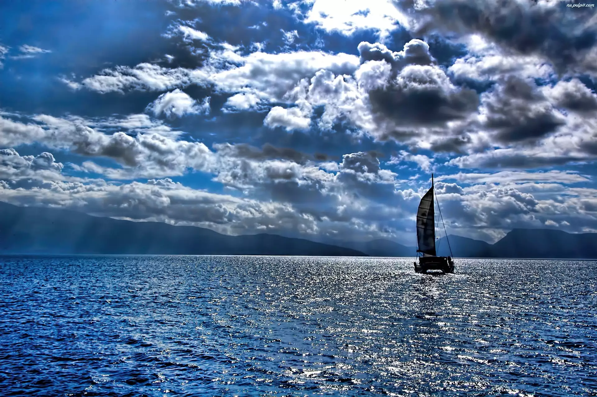 Żaglówka, Jezioro, Chmury