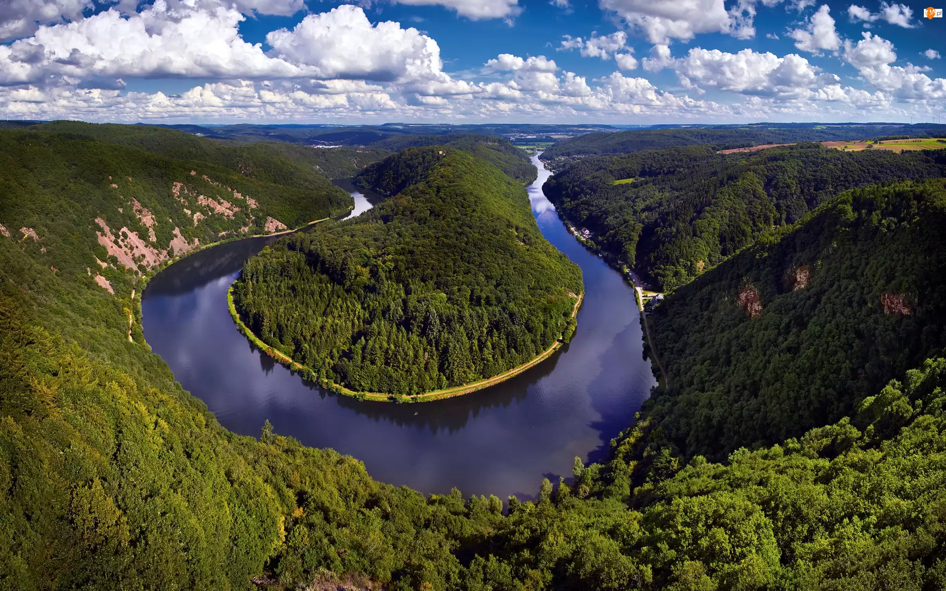 Niemcy, Wzgórza, Mettlach, Zakole, Meandro del Sarre, Lasy, Drzewa, Rzeka Saara, Chmury