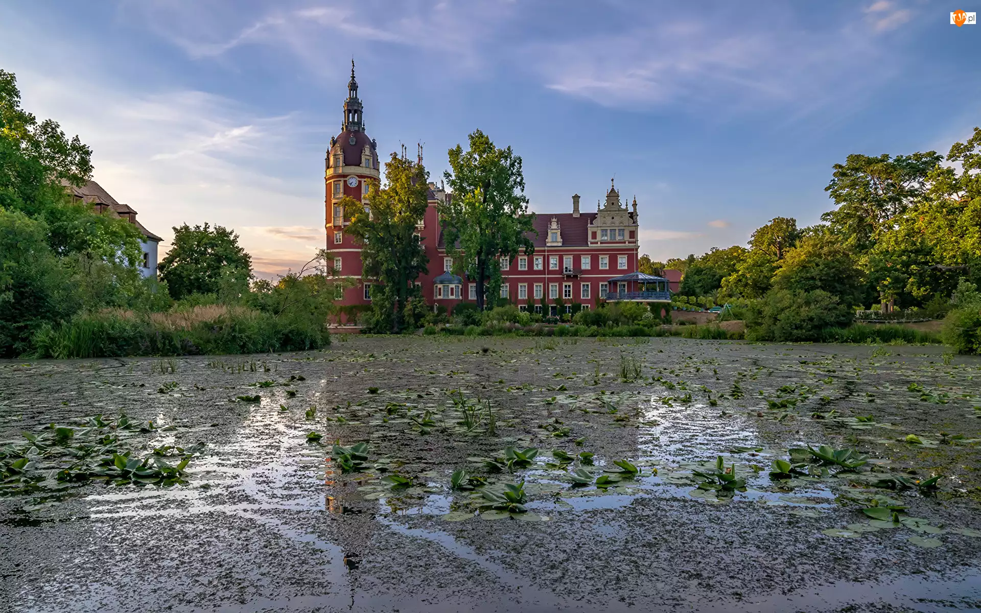 Schloss Muskau, Zamek w Mużakowie, Niemcy, Zamek, Saksonia, Mużaków, Jezioro