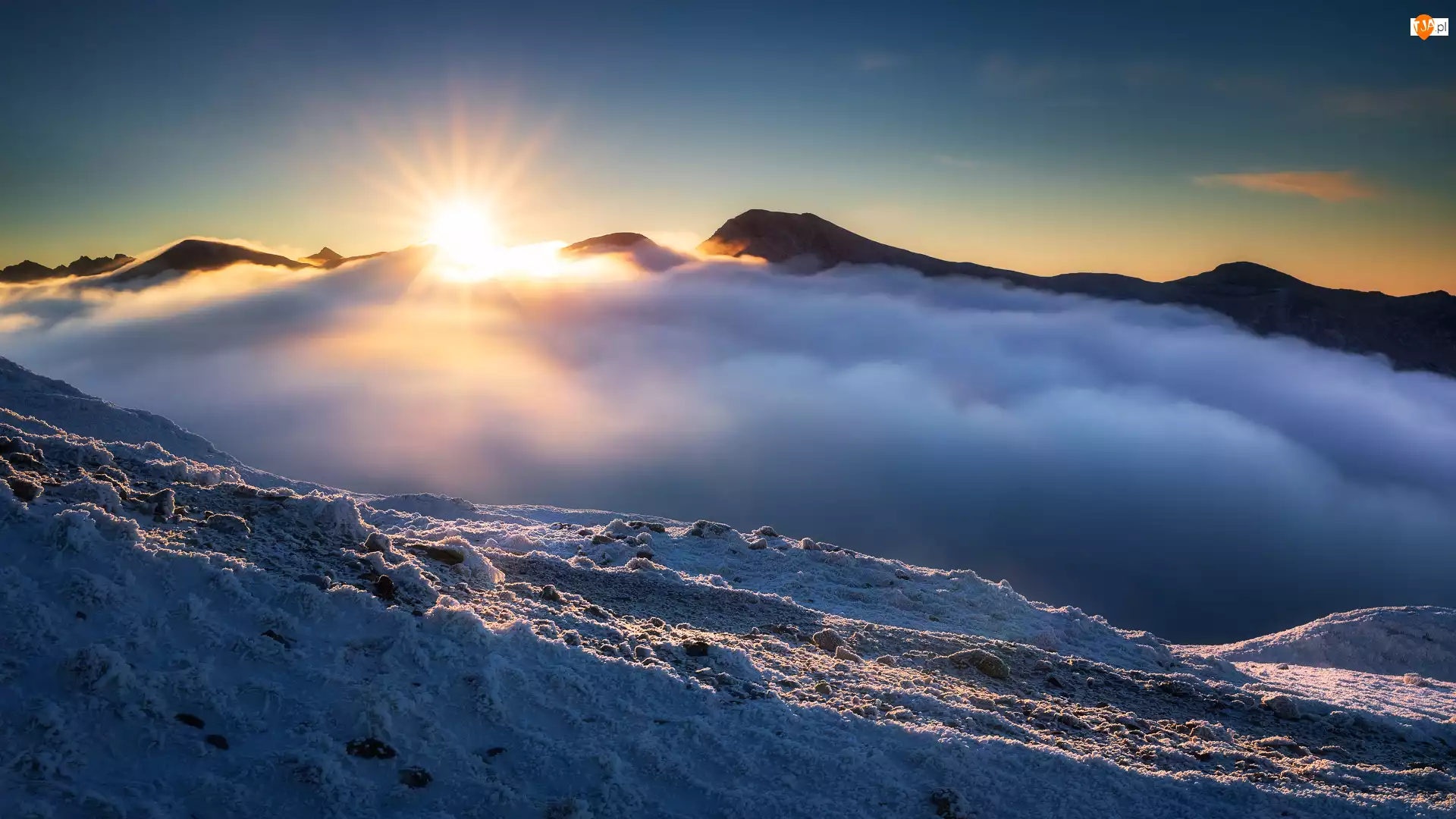 Góry, Słowacja, Góra Wołowiec, Mgła, Tatry, Promienie słońca