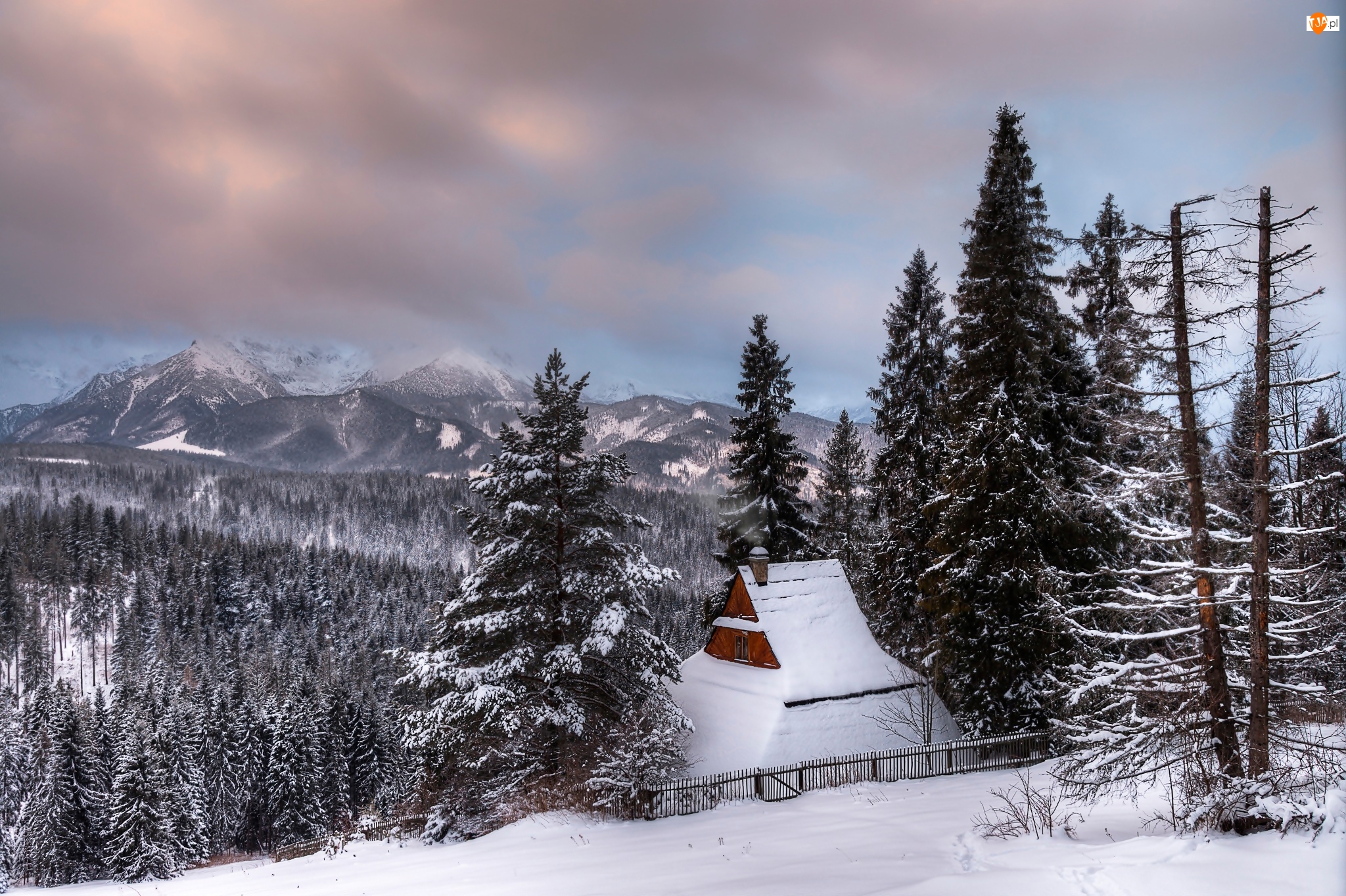 Góry, Dom, Drzewa, Zakopane, Las, Zima
