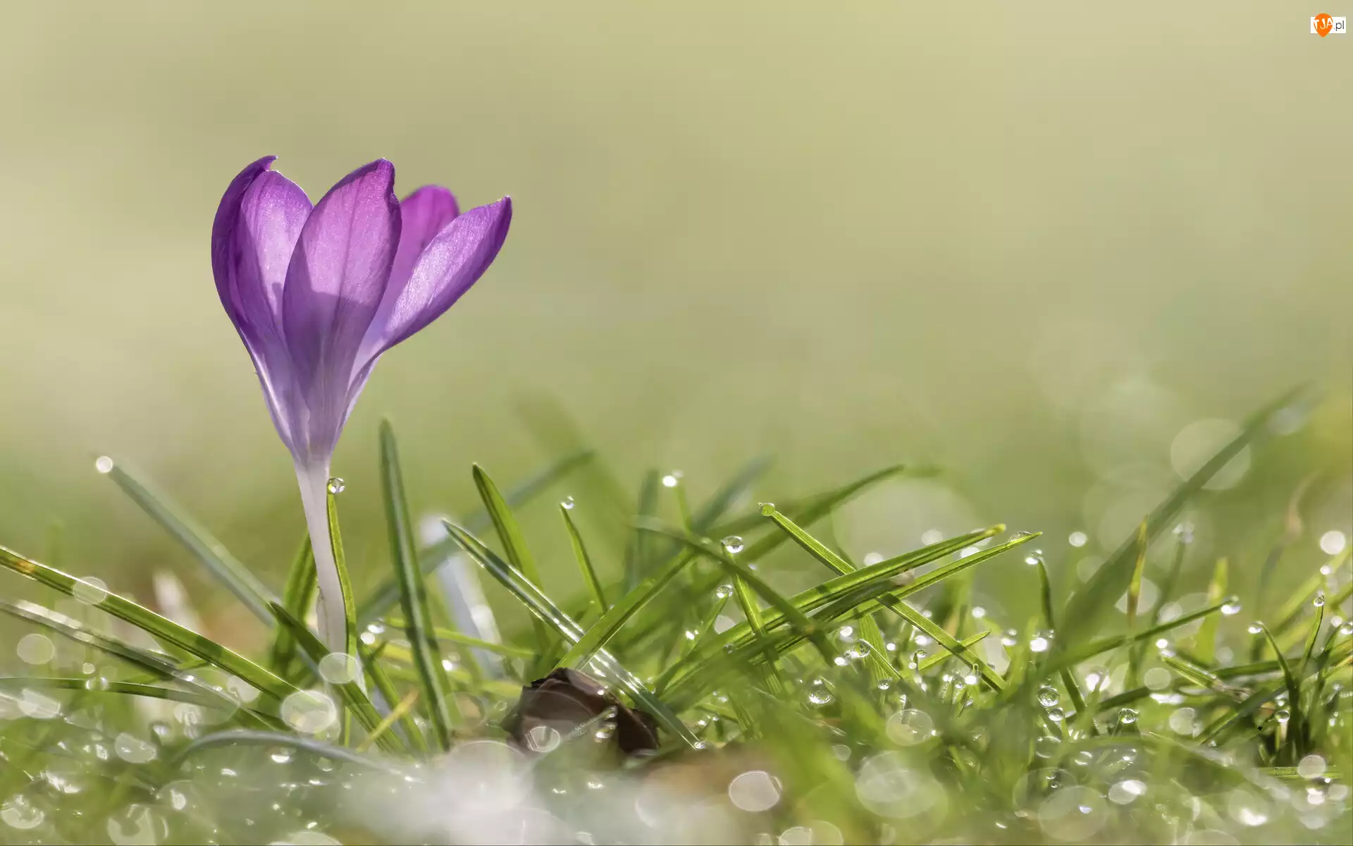 Zbliżenie, Krokus, Trawa, Krople