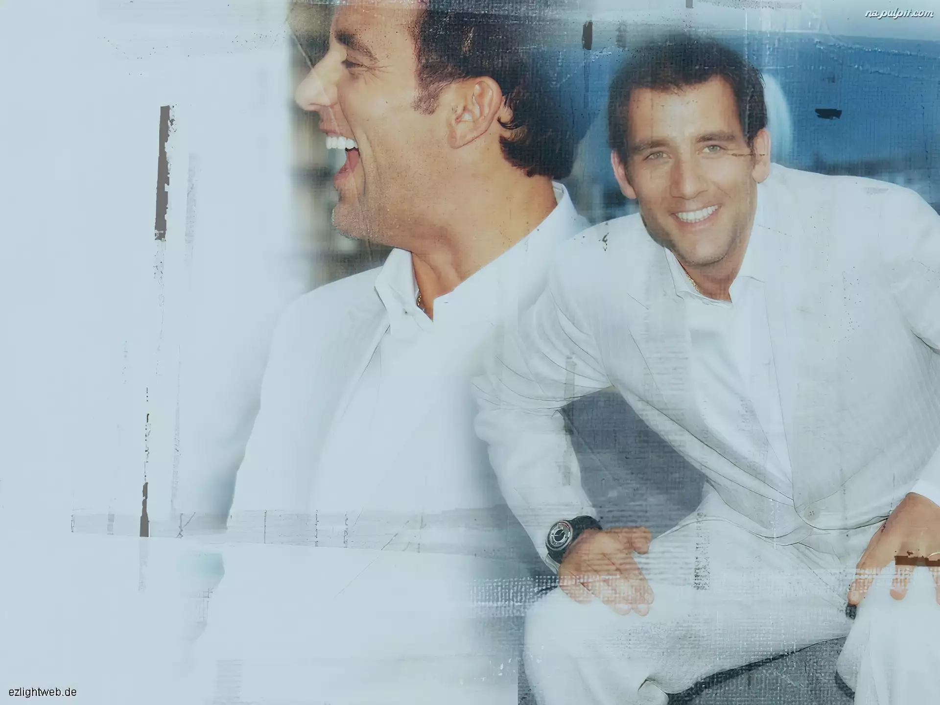 zegarek, Clive Owen, biały strój