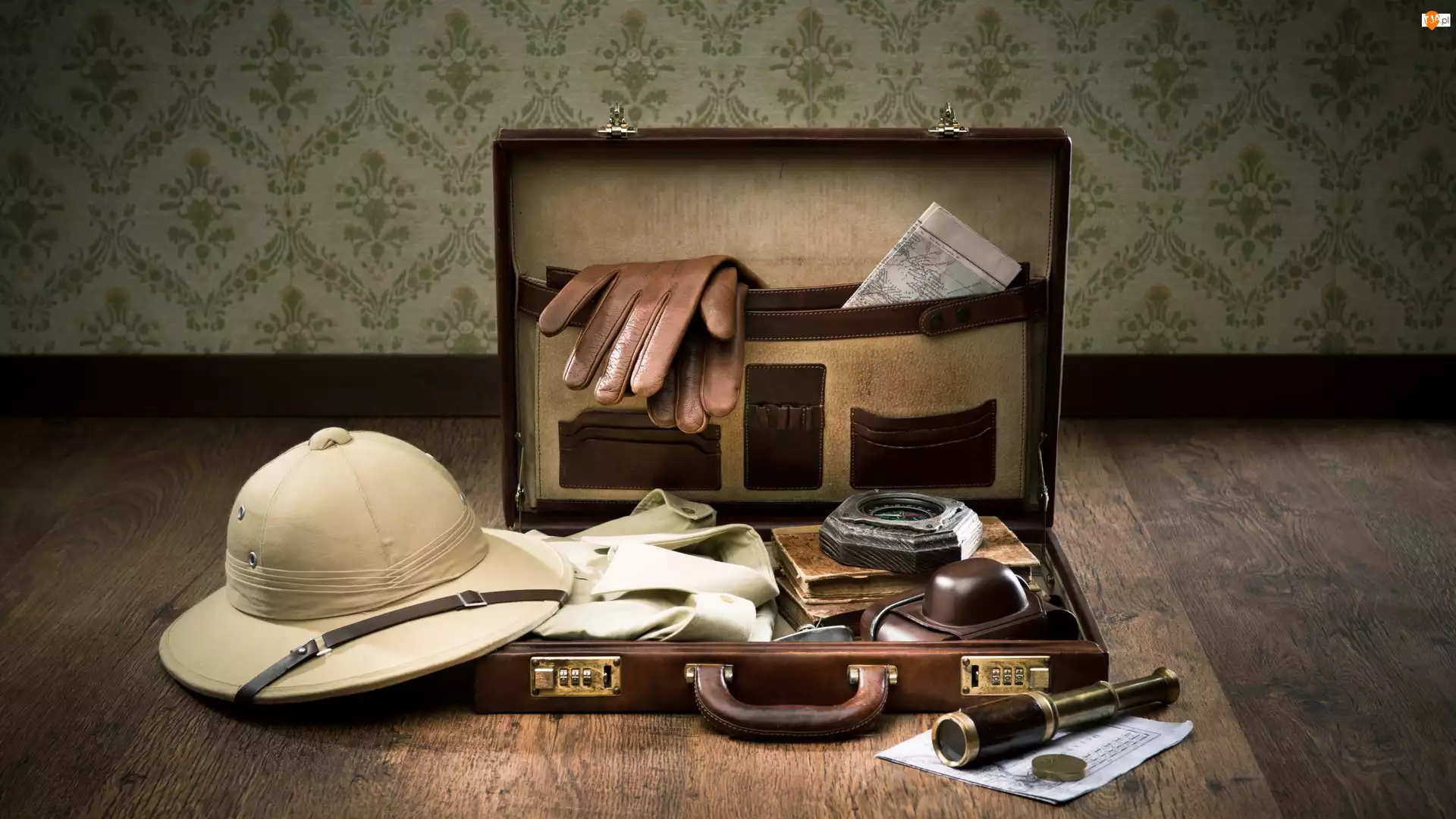 Kompas, Rękawiczki, Luneta, Walizka, Kapelusz