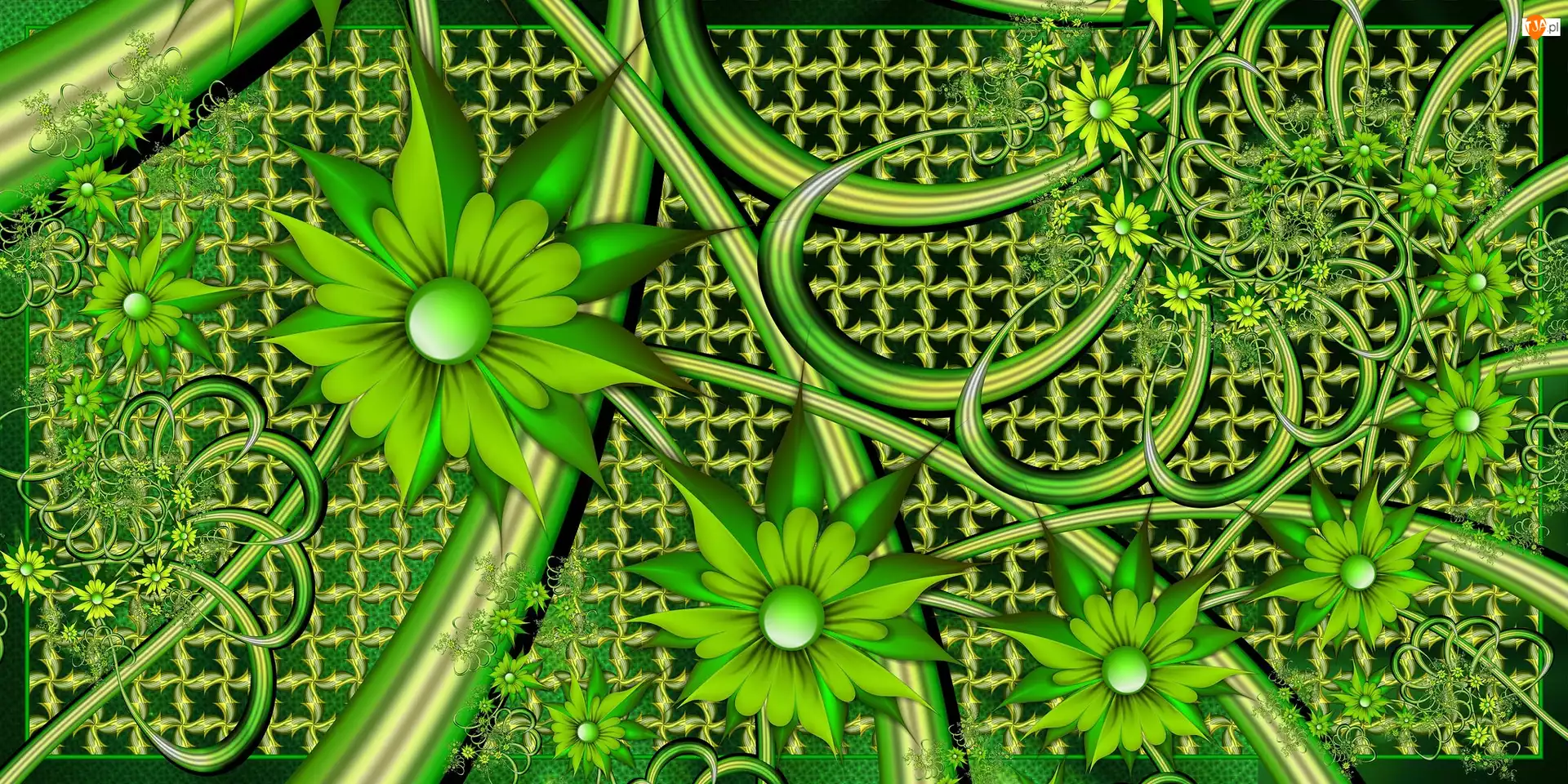 Zielone, 3D, Kwiaty, Grafika