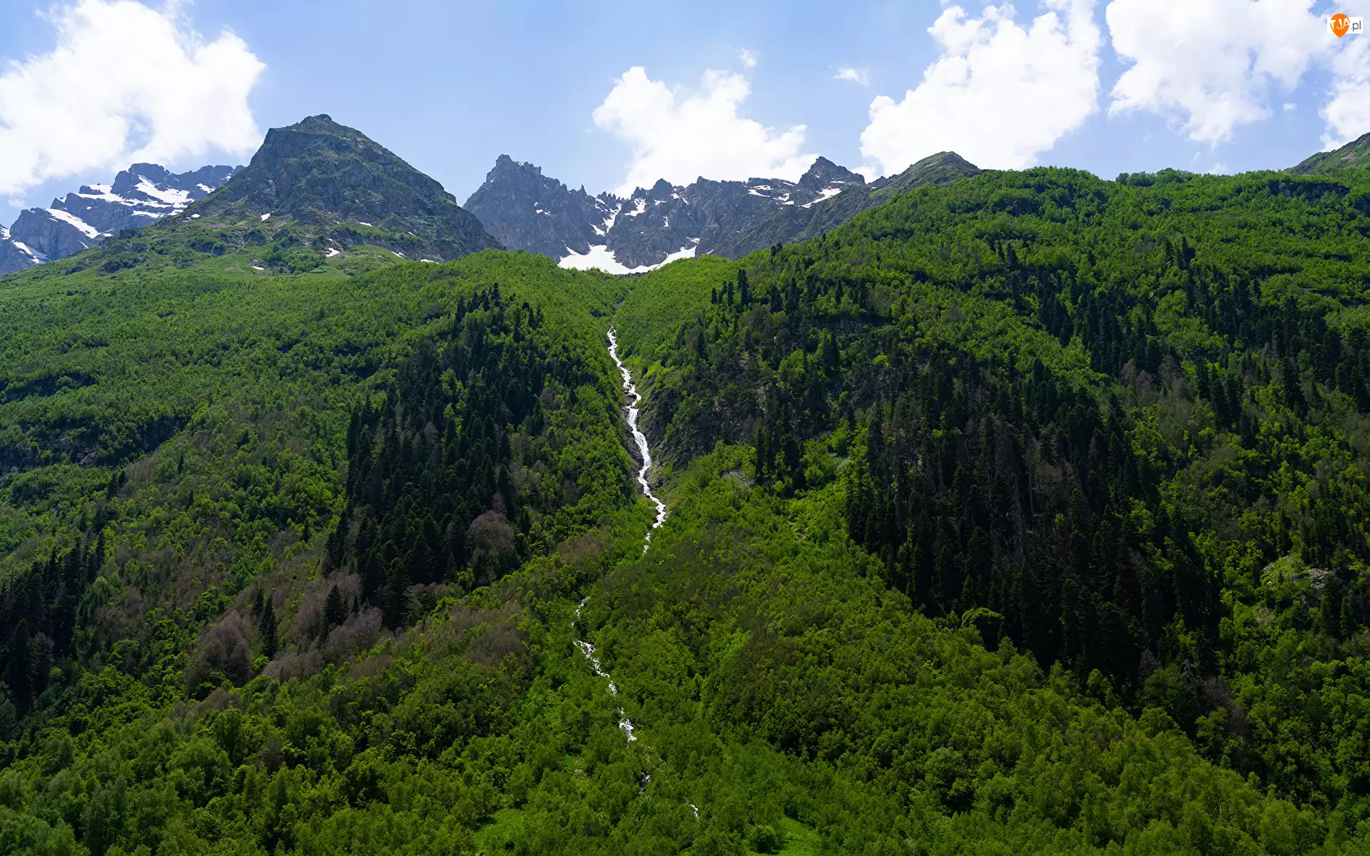 Zielone, Drzewa, Rzeka, Góry, Lasy