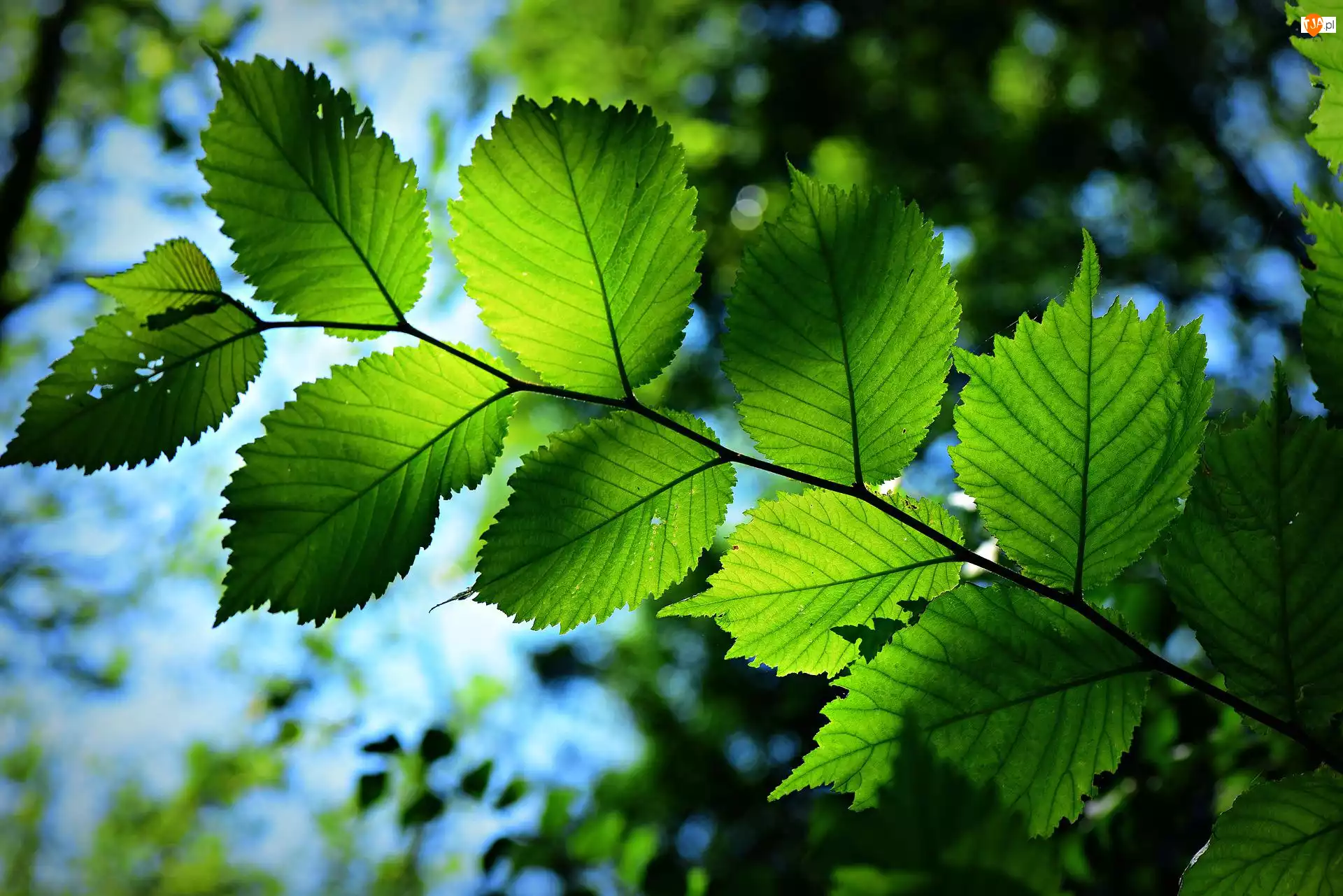 Liście, Gałązka, Zielone, Rozświetlone