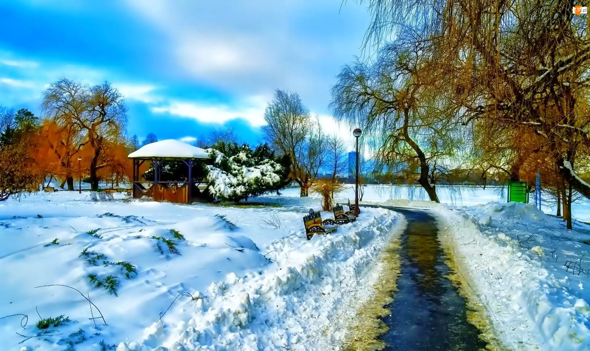 Zima, Altanka, Park, Ławki