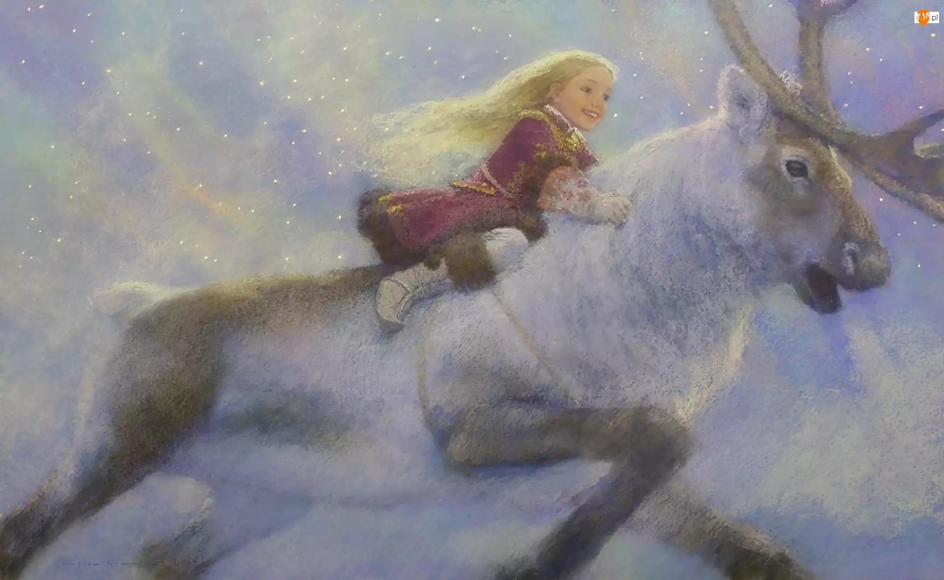 Zima, Christian Brimingham, Dziewczynka, Malarstwo, Renifer