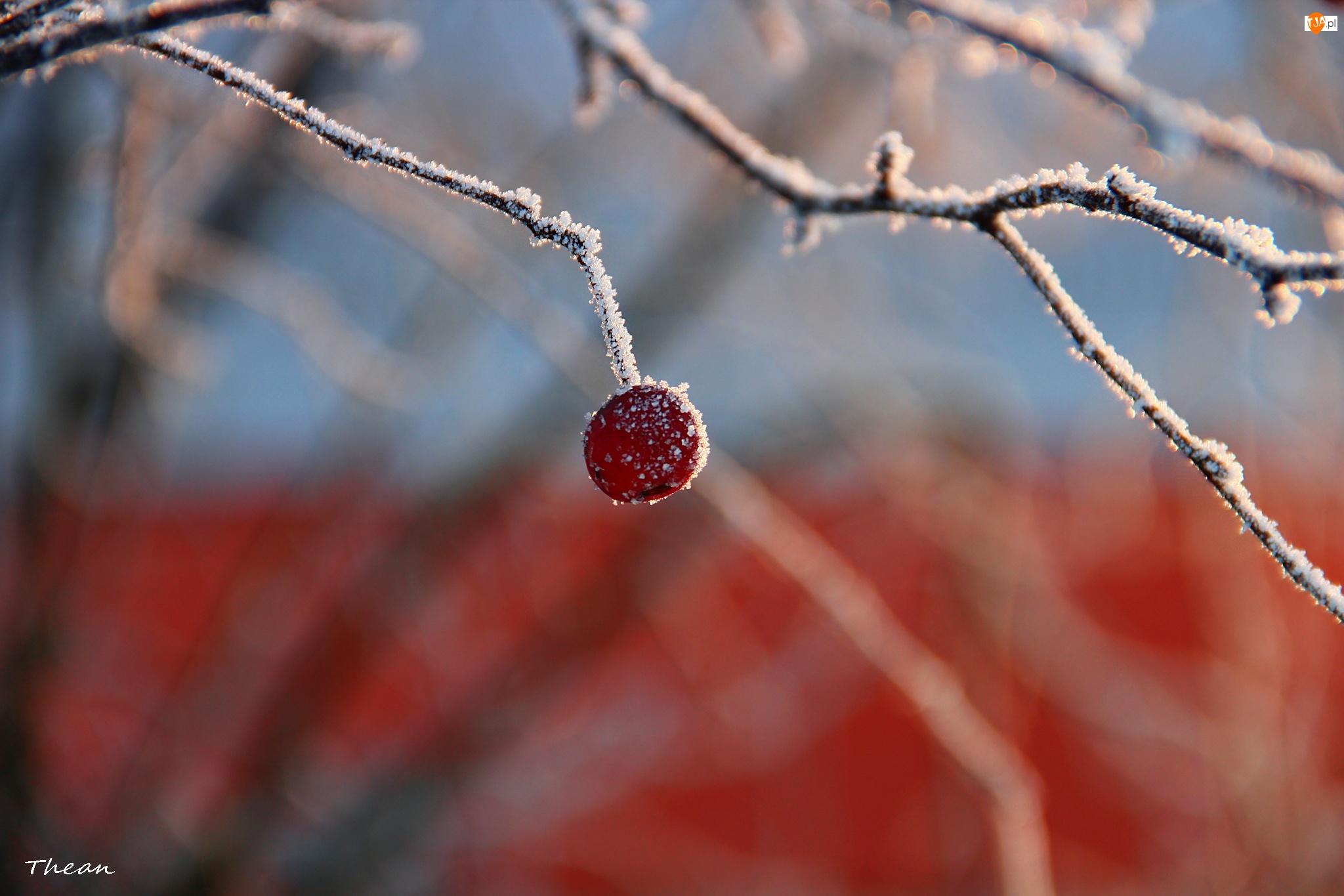 Zima, Czerwona, Gałązki, Jagoda, Szadź