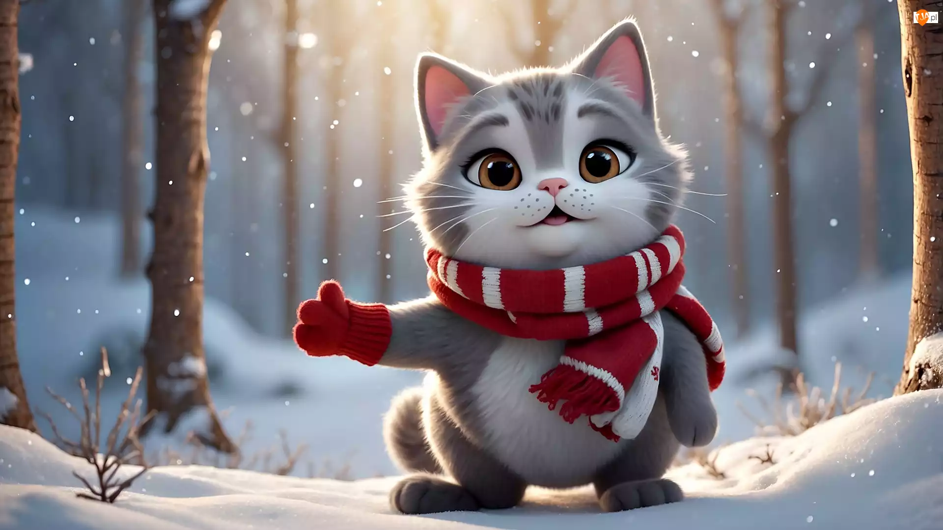 Zima, Grafika, Szalik, Kot, Las
