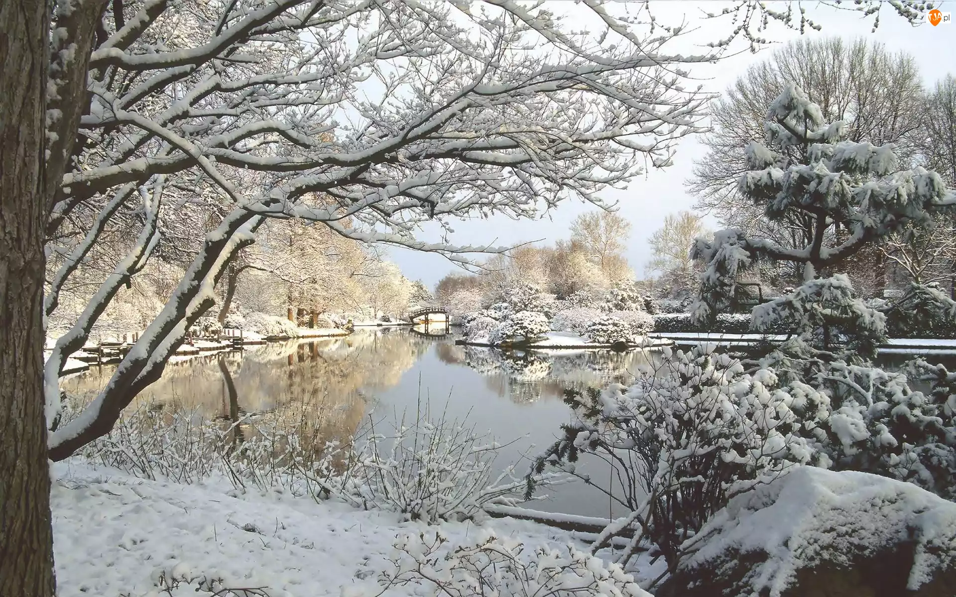 Zima, Jezioro, Drzewa, Ośnieżone, Śnieg