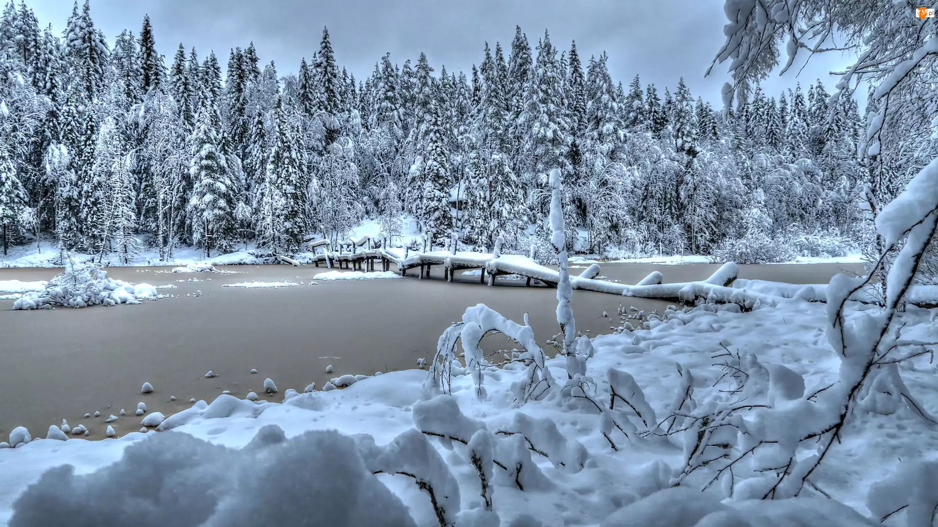 Zima, Mostek, Las, Rzeka