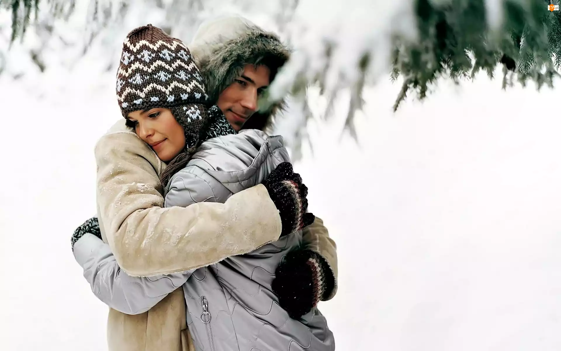 Zima, Para, Mężczyzna, Kobieta, Miłość